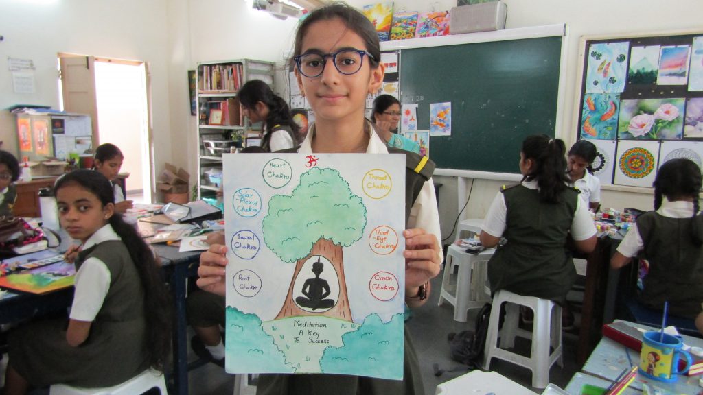 Our middle school hosted an exciting Art Competition for Classes 6 to 8 on 15th July, 2023. Students explored “YOGA” (class 6) and “Meditation” (classes 7 & 8) through drawing and painting. The Art Room and 8H class room came alive with 49 entries, showcasing incredible talent. Participants received participation certificates and top winners were awarded. Their masterpieces will be exhibited on our website.