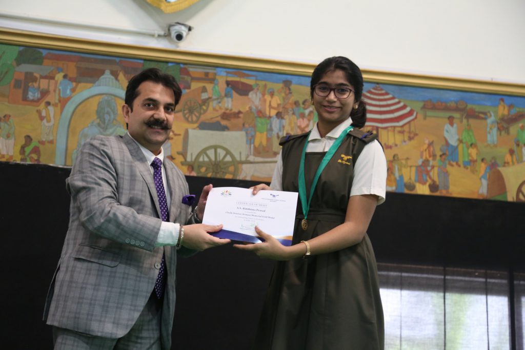 The highlight of the ceremony was the recognition of Sarthak Lamba, a shining star of the school, who not only secured the top position within the institution but also emerged as the state topper and secured an impressive third rank at the national level. Sarthak’s extraordinary academic accomplishments earned him a remarkable haul of four gold medals, solidifying his position as a true exemplar of academic excellence. In addition to the gold medals, Sarthak was also awarded prestigious book prizes in recognition of his exceptional achievements.