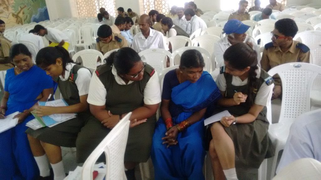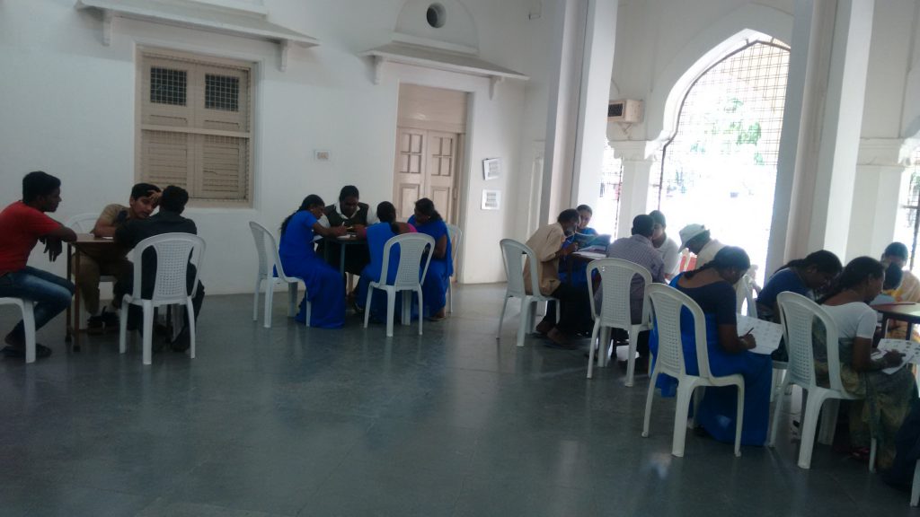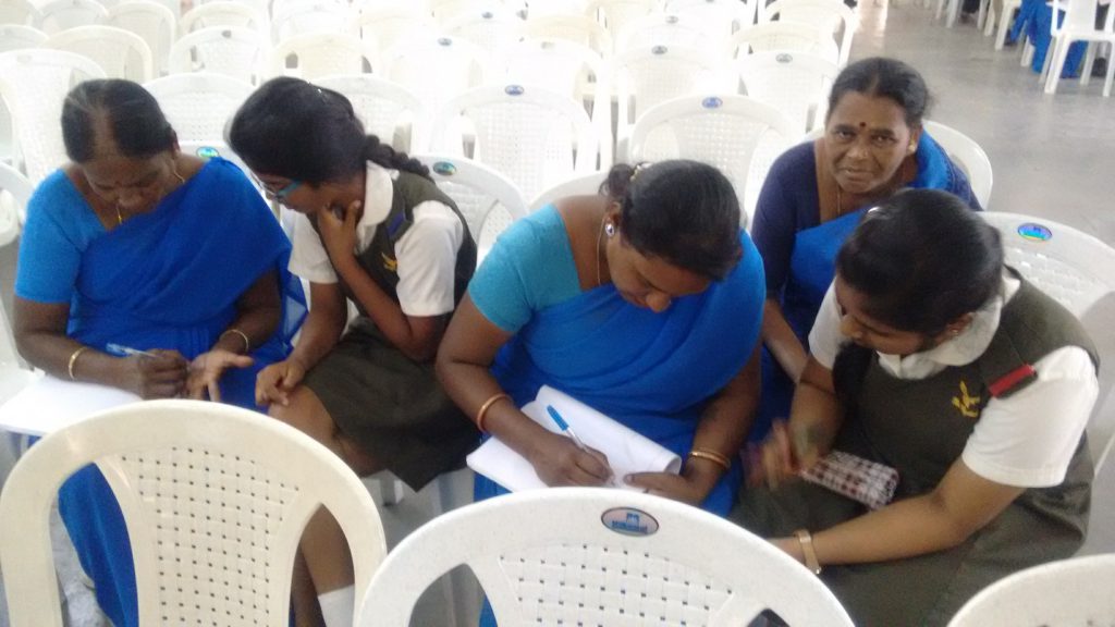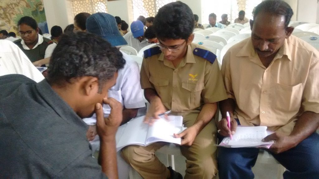 An Adult Literacy Session was taken by students of Class 12, Batch of 2017-2018, where they helped the sub-staff of the school with socially useful productive work.