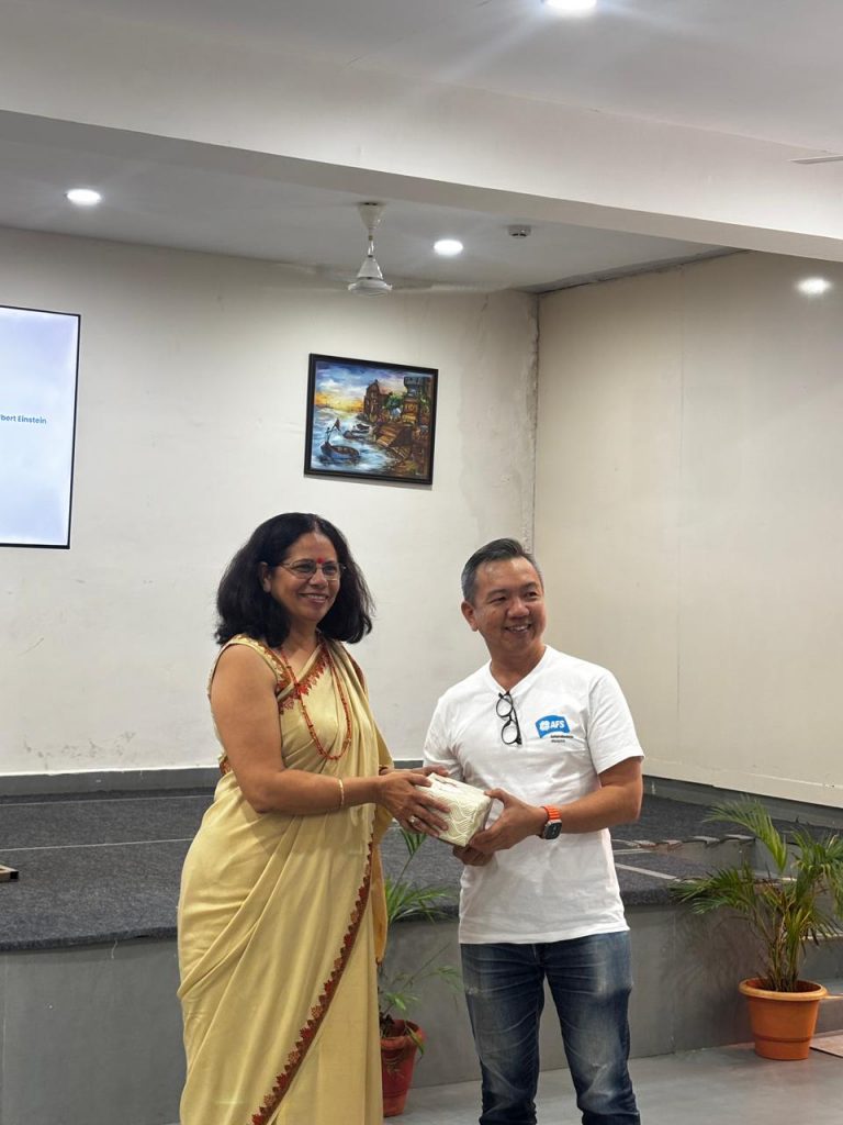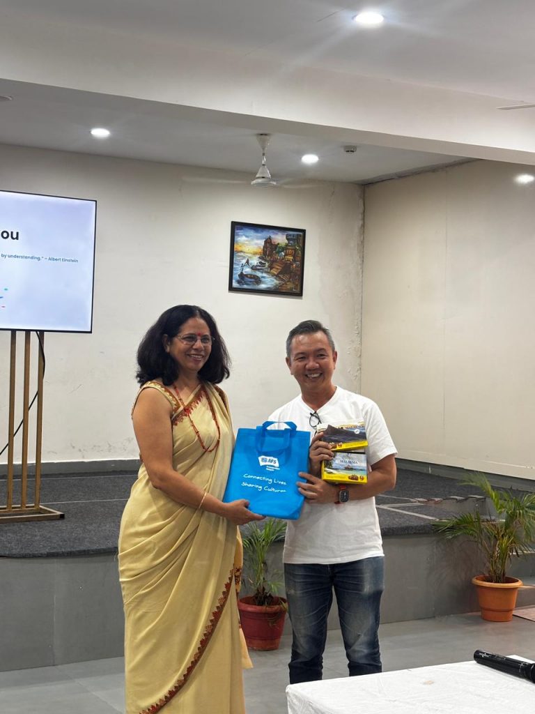 The meet commenced with a welcome and introduction of all members by Ms. Kapoor, followed by a cake-cutting ceremony to celebrate 20 years of AFS India. Mr. Jack who had hosted Mr Varun who went for Educator’s Intercultural Exchange Program in Malaysia in July 2025, then addressed the gathering, after which representatives from each school shared updates on their AFS initiatives. Ms. Pratibha Dhal spoke about the various projects undertaken by her under the AFS banner. Aiofe, a YES Program participant from the US, shared her experience, followed by Mr. Varun, who spoke about his learnings from the Educator Exchange Program.