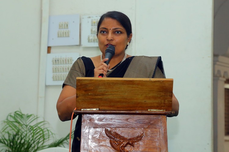 The school welcomed the august gathering with the lighting of the lamp symbolising truth, knowledge, and understanding. The school choir sang the school song mellifluously. V Trishati, a student of class 7D performed a traditional invocatory piece, Brahmanjali, to roll out the red carpet. The august gathering was then given an account of the glorious history of the school through sand art. The presentation was enhanced by the use of music and various lighting techniques under the table and it followed a script narrating how this acorn became an oak since its inception in 1925.