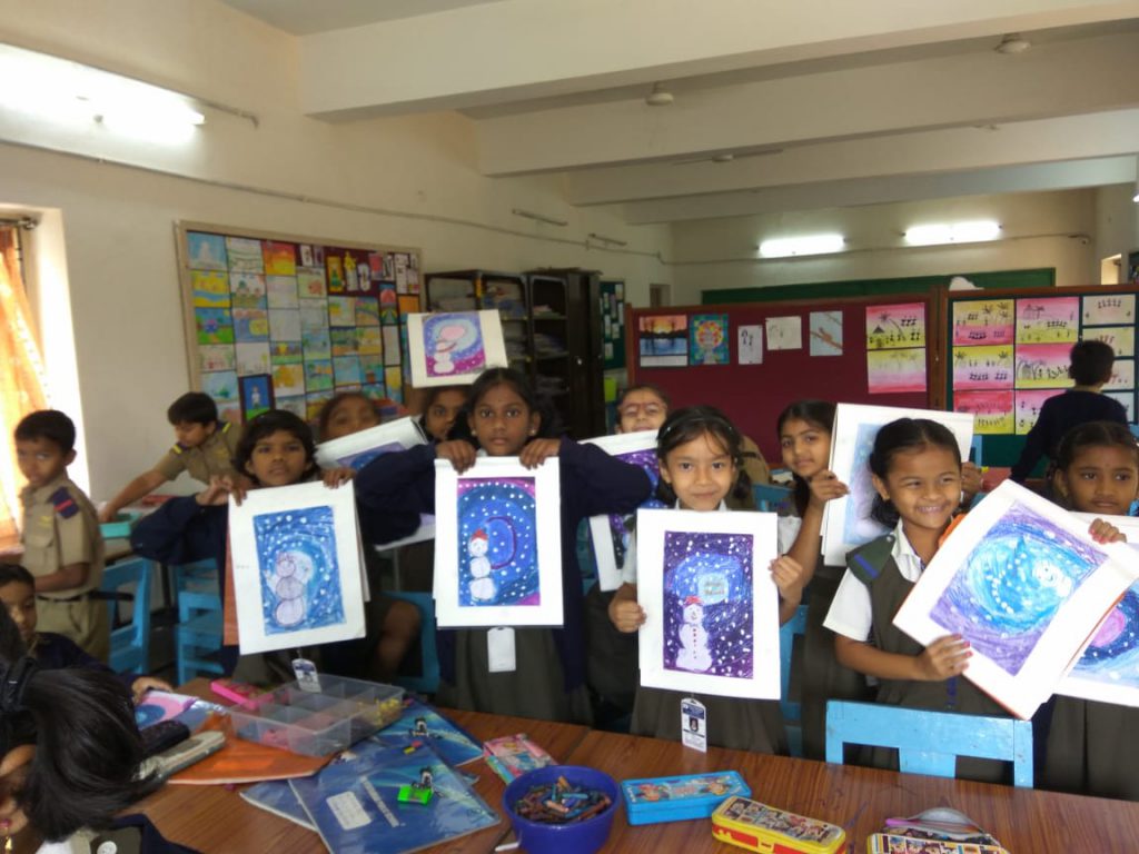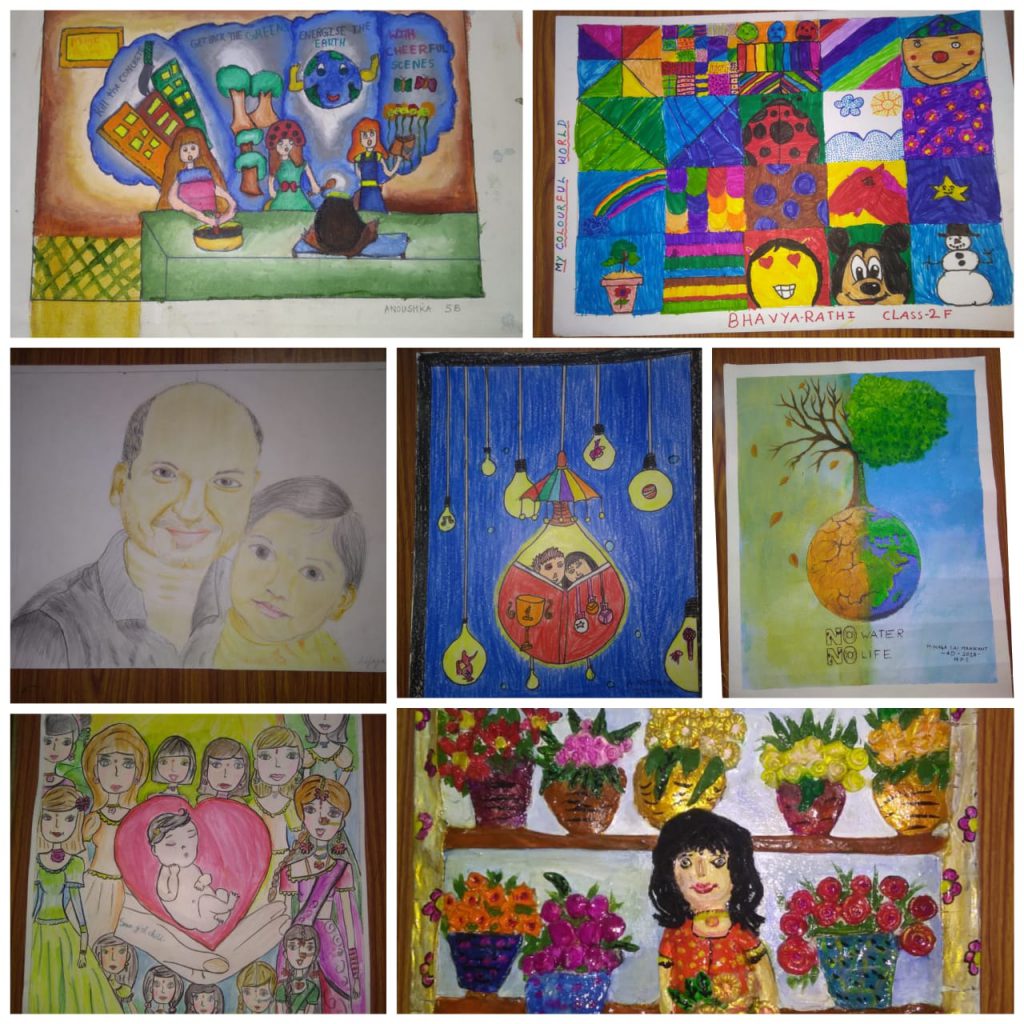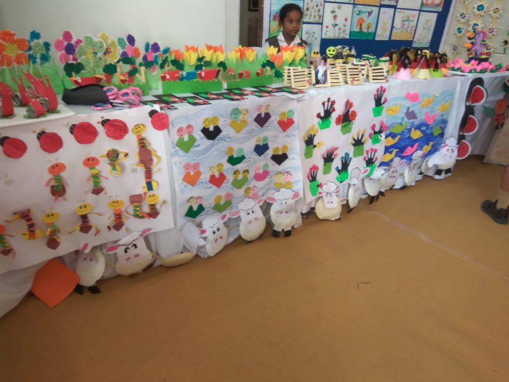 Annual Art show at School exhibition is highlight as always . Various art and craft projects done by children of classes 1 to 5 in their regular Art classes are displayed. These include Animal and birds drawings, landscapes, portraits, cartoons etc. The 3-D crafts made from paper plates and cups, waste boxes, old CDs, unit Origamis fascinated the visitors. Live demos by children kept the inquisitive visitors on their toes. Annual Art exhibition is a wonderful platform for showcasing our children’s budding Talent. Our motto is to see the creativity within each child bloom.
