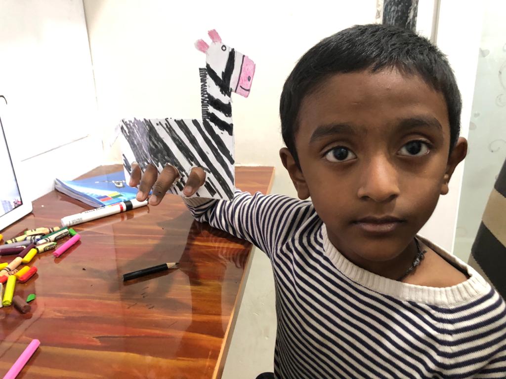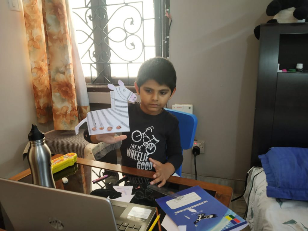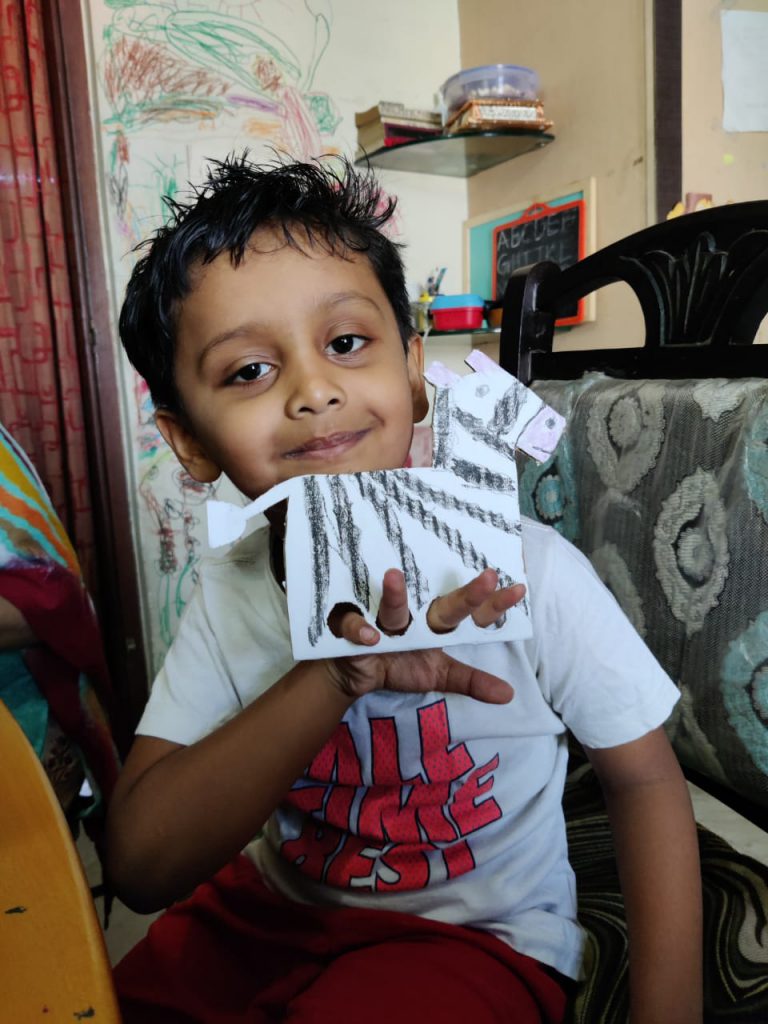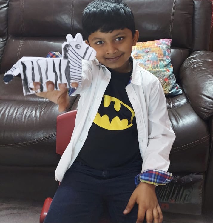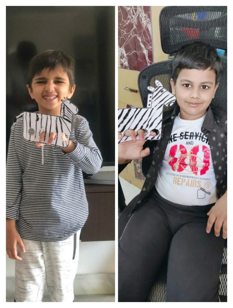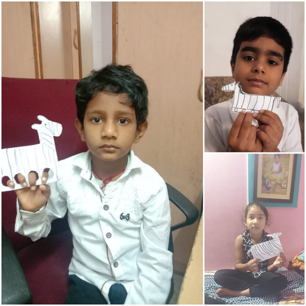 PP2 children learnt different things about black and white colour. A presentation about animals and things that are commonly seen in black and white was shown. Rhymes were also shown on white and black and few interesting facts about these colours were shared with them. As part of black and white day craft activity, a finger puppet of zebra was made in the class. After making it, they sang a rhyme on zebra with the finger puppet on their hand.