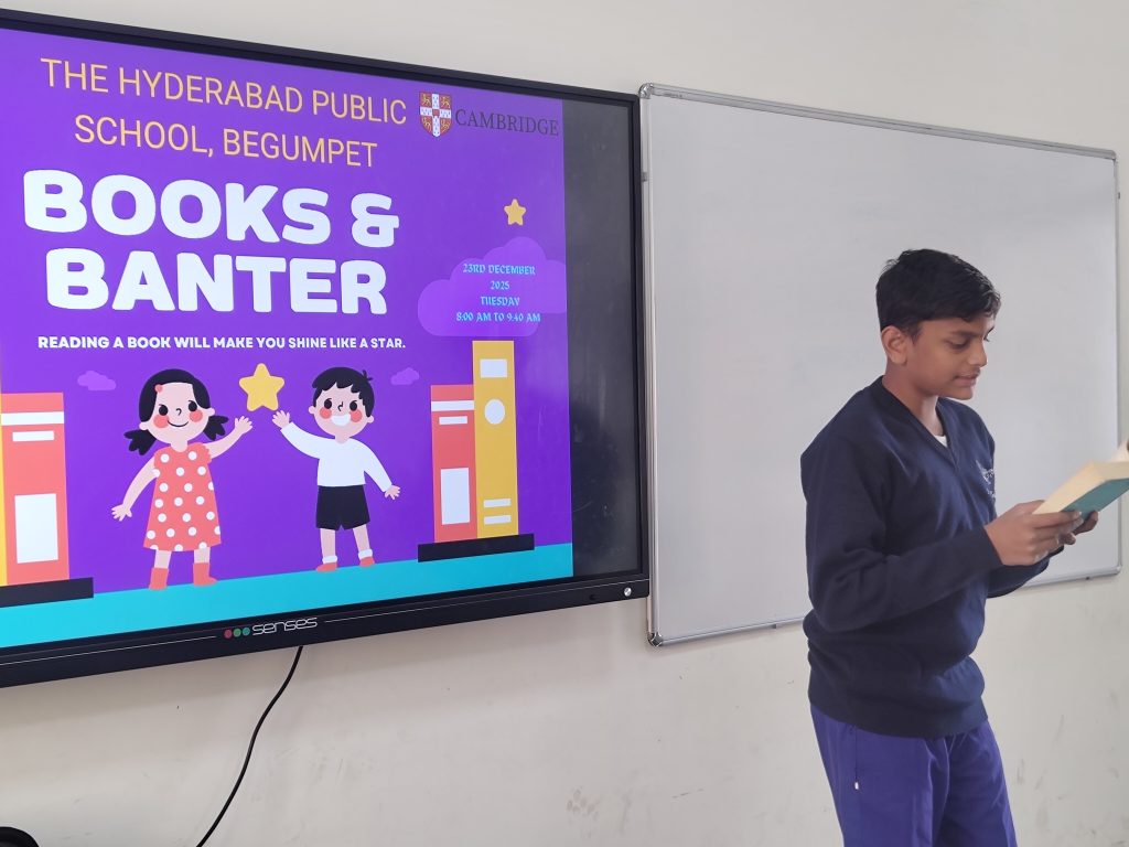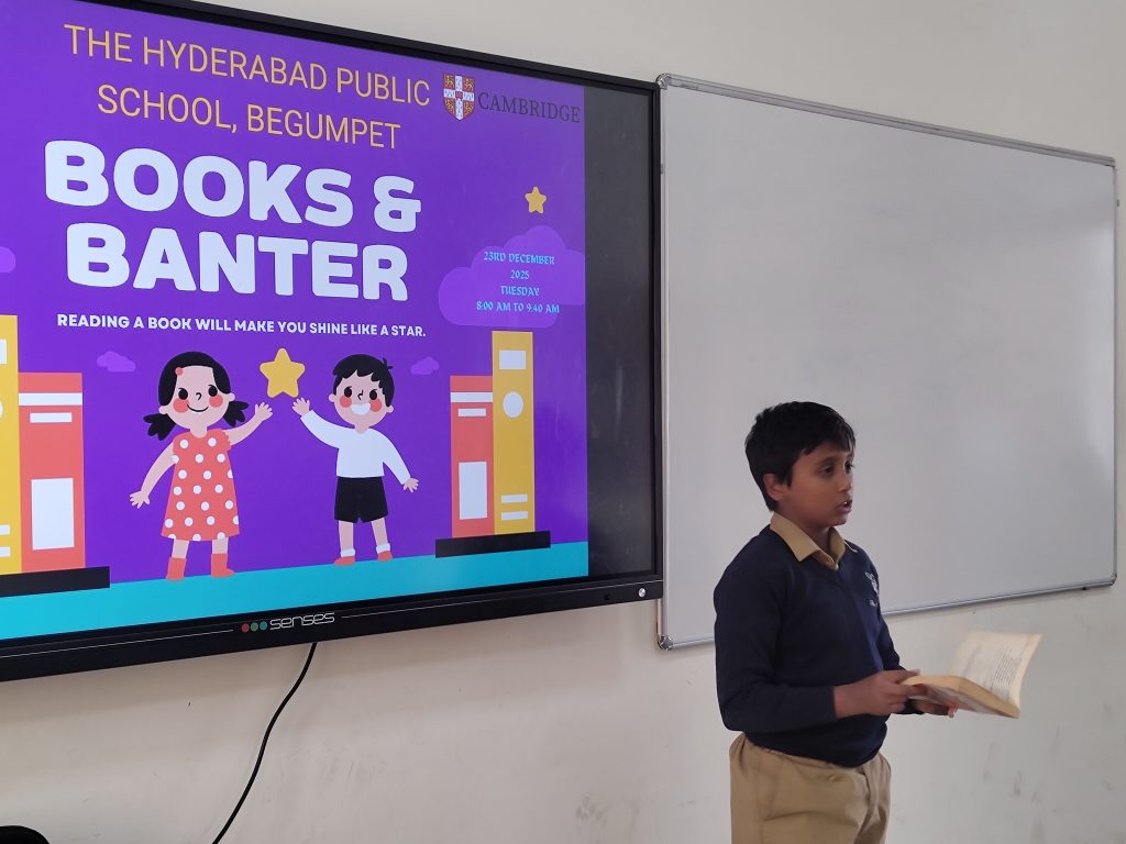 The Books and Banter programme was successfully organised at The Hyderabad Public School, Begumpet, on 23rd December 2025, with the aim of fostering a love for reading and encouraging meaningful literary discussions among students from Grades 6 to 12. The event provided an interactive platform for learners to engage with books beyond the classroom and share their perspectives in a collaborative and enthusiastic environment.