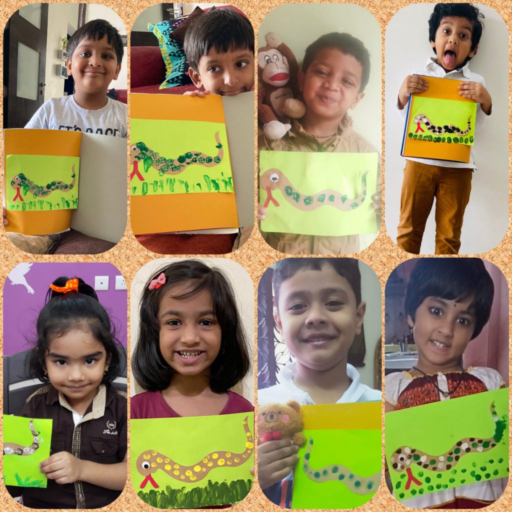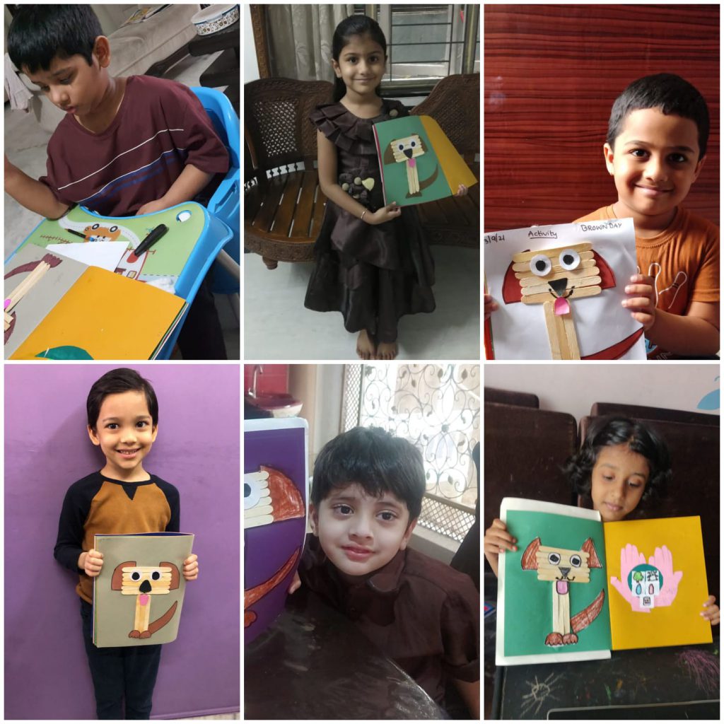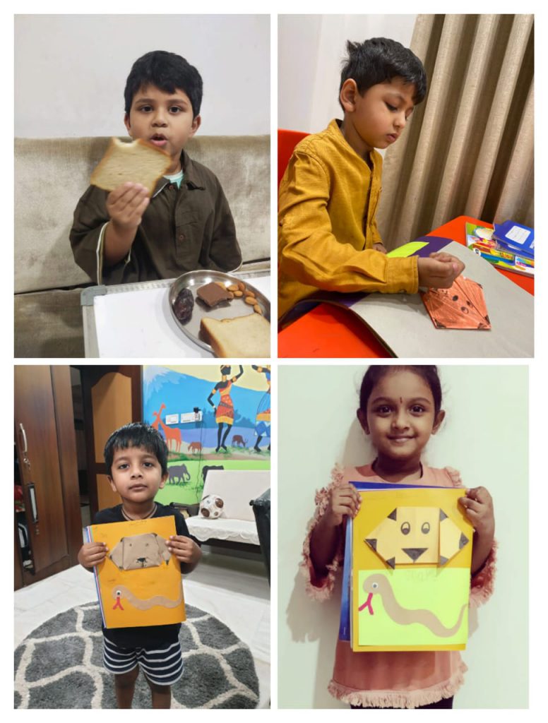 Children were shown a presentation about things in brown. As a part of the craft activity, they made a snake and an origami dog which was a takeaway of the day. Children joined the teachers for breakfast with a brown plate – brown food.