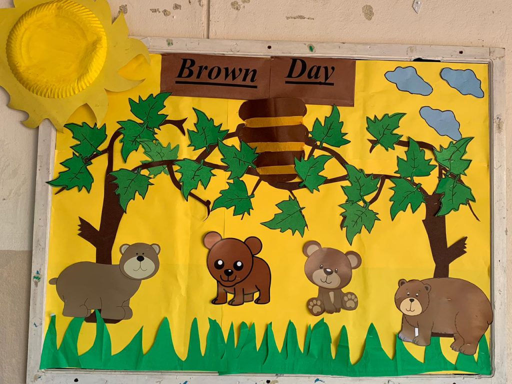 Brown day, the last of the colour days was celebrated on Tuesday,12 March 2019 by all the classes of Pre Primary II. Children and teachers came dressed in various shades of brown. Some wore t shirts of their favourite brown creatures. The cut-outs of their favourite animals like ground hogs, bears, monkeys, giraffes, dogs and owls were put on display. Treats like cupcakes, cookies, cakes and chocolate were also displayed and children looked at them in delight.