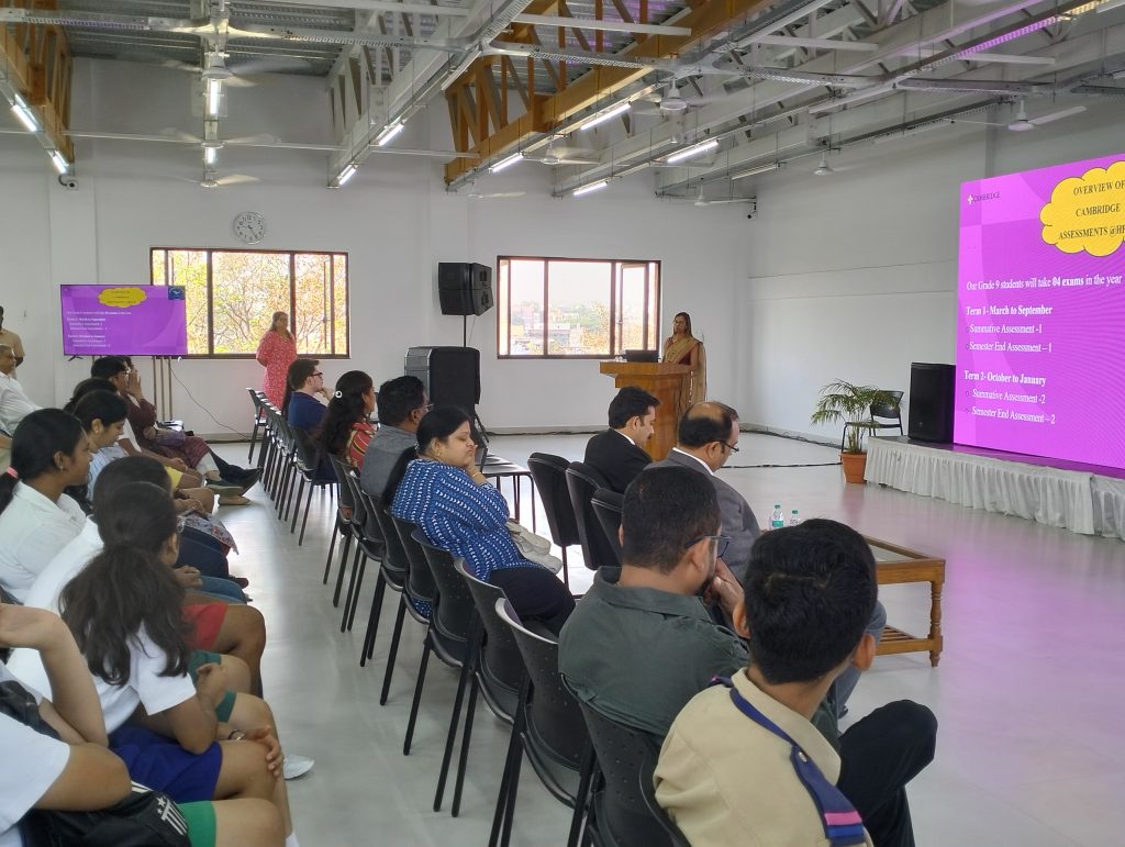 The session commenced with Vice Principal Ms. Amritha Chandra Raju, who underscored the necessity of blending disciplined academics with dynamic co-curricular activities. Following this, Cambridge Coordinator Ms. Urvashi Sudheer Makhija and Academic Coordinator Ms. Nasreen Fazal Khan provided technical insights into the curriculum, examination structures, and the collaborative methodology employed by facilitators to utilize campus facilities effectively.