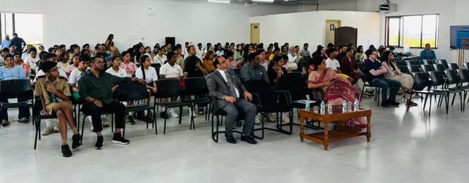 Ms. Sonali Roy Chowdhury Singh, Head of International Curriculum, highlighted recent curricular shifts. She specifically noted the importance of practicing past papers to build familiarity, despite the unpredictable nature of Cambridge assessments. She emphasized how deeply the school culture is rooted in strict adherence to deadlines and diligent policy management. Reiterating the importance of institutional discipline, she urged students to value these standards and set a high example for their juniors. Complementing the academic discourse, Mr. Rajesh Makwana, Head of Admin and Facilities, showcased the school’s premium infrastructure, including the dining hall, Olympic-standard swimming pool, and specialized shooting range.
