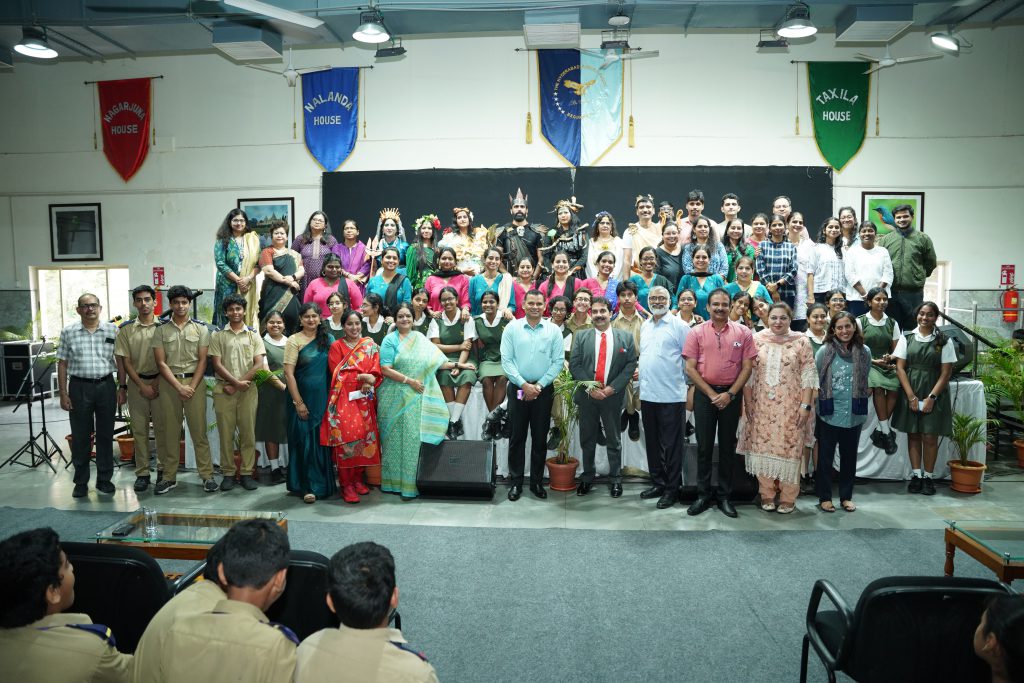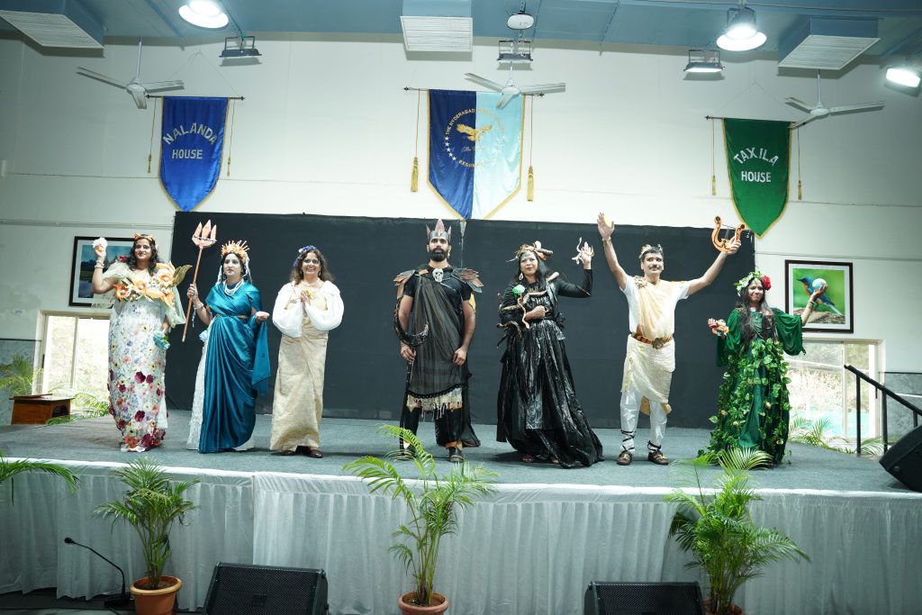 The highlight and special attraction of the day’s celebration was the fashion show by teachers. It left the audience mesmerized. Teachers, dressed as Greek Mythological characters, walked the ramp confidently in outfits designed by students to promote sustainability and waste management.