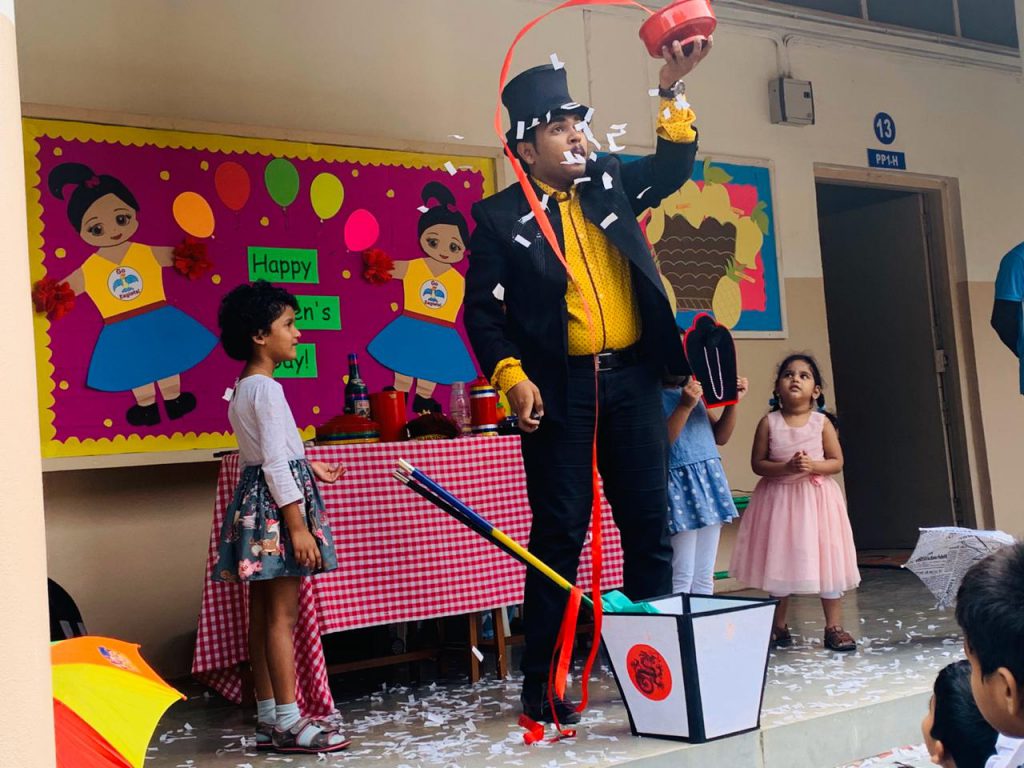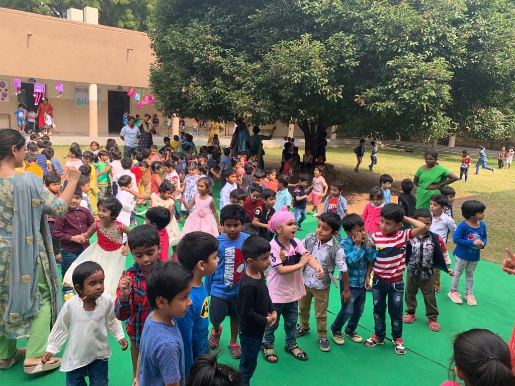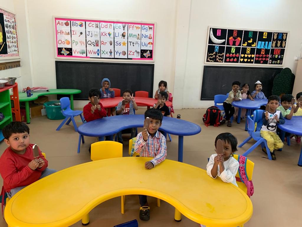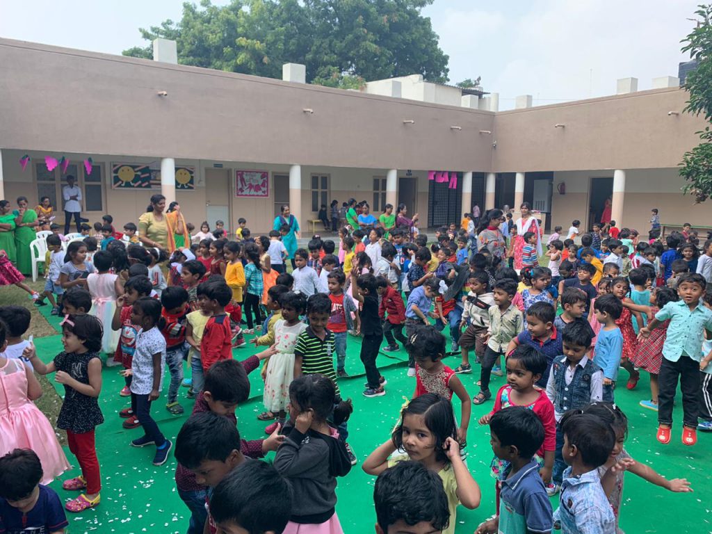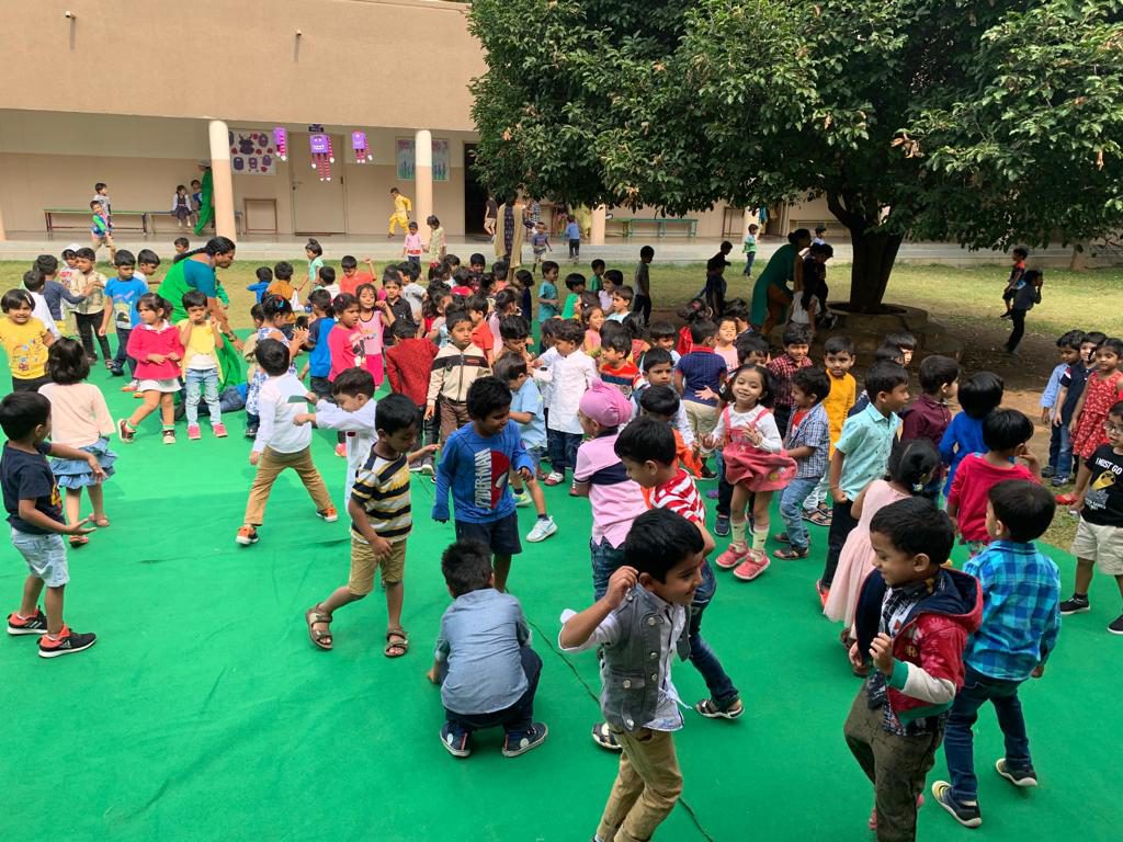Children’s day was a grand celebration in the Pre-Primary. The day began with a morning assembly followed by the main event -A magic show which was a surprise for the children. The young ones were captivated and enthralled by the magic tricks and were more than excited to join the magician on stage and be a part of the show. After the magic show, it was time for a sumptuous meal-Chicken Biryani, Manchuria, vegetable pulao, which were part of the menu. But, the show stopper that created the most excitement was the ‘Choco bar’ ice cream! The rest of the day was spent dancing and singing along to their favourite tunes and rhymes. It was indeed a happy and special day.