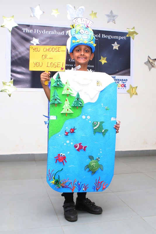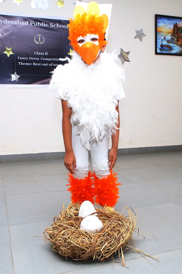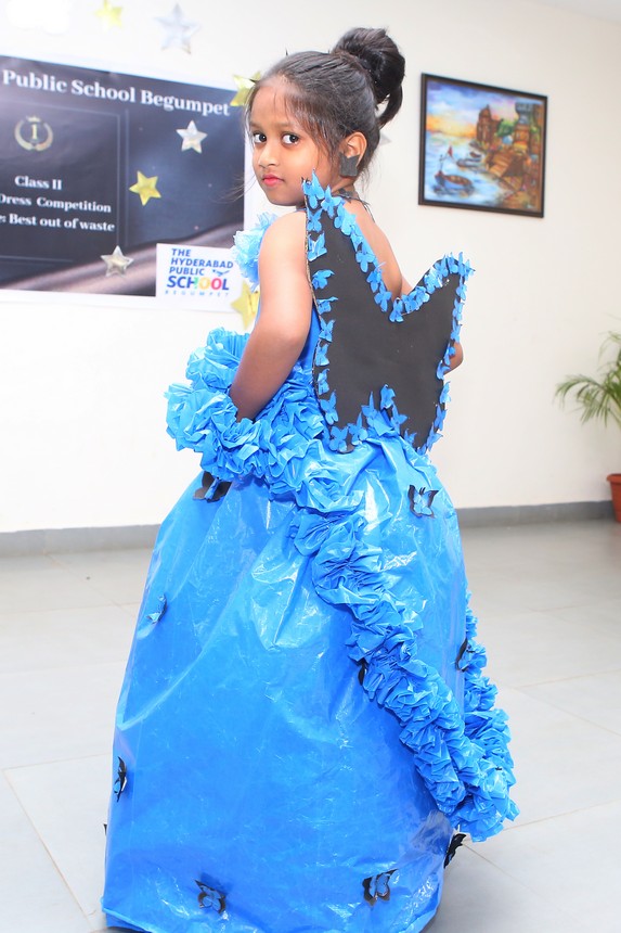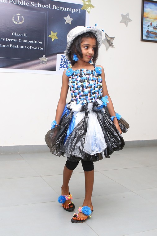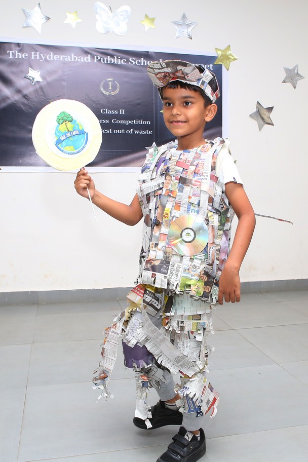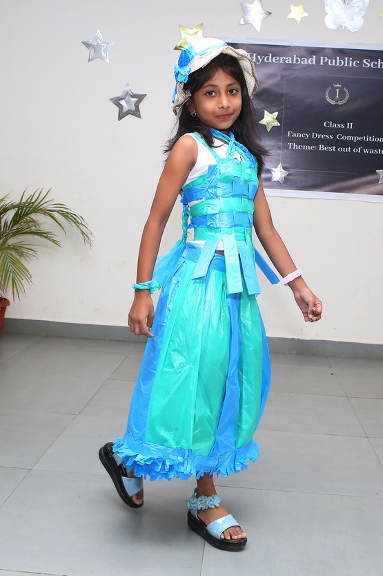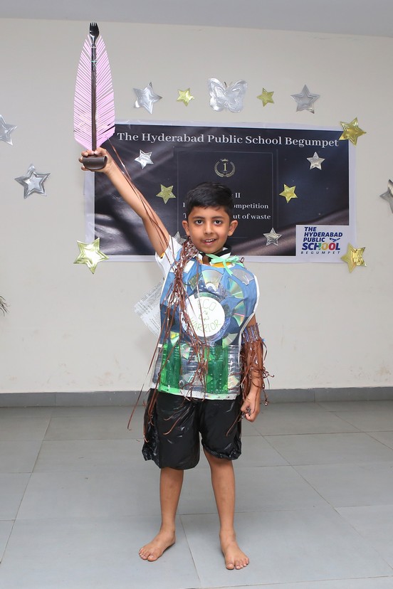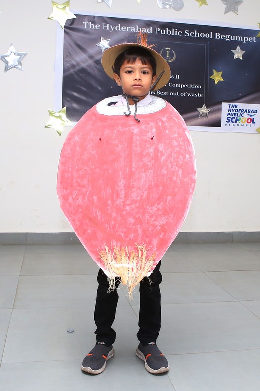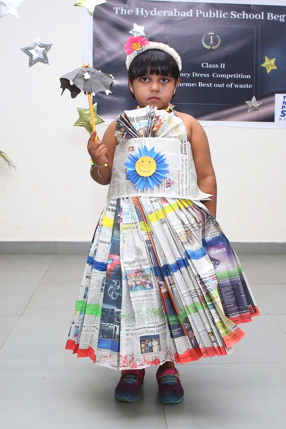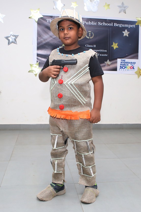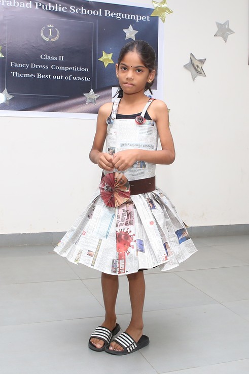 The Mini Auditorium of the school was buzzing with excitement on Saturday 15 July 2023, as the students of class 2 participated in a Fancy Dress Competition themed ‘Best out of Waste’. The event provided a platform for the young participants to showcase their hidden talents and creativity by dressing up in costumes made from scrap materials.
