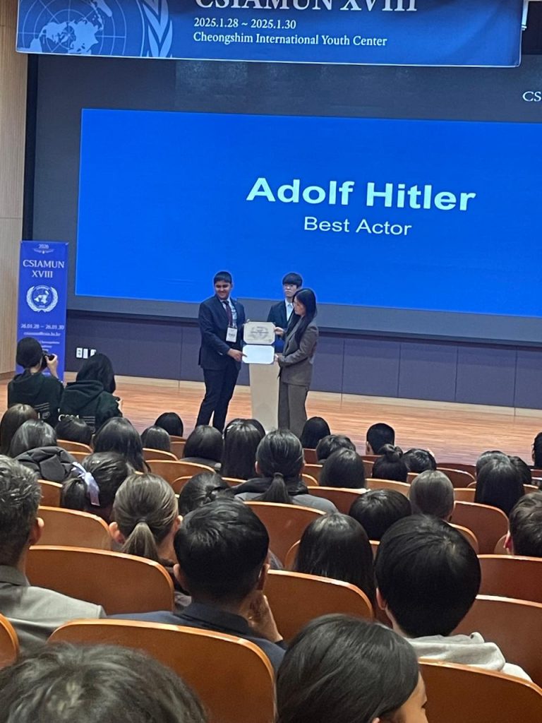 From the streets of Myeongdong to the halls of diplomacy,between intense Crisis Committee sessions and experiencing the heart of Korean culture,the students brought home new friendships, a global perspective and even a Best Actor Award.Lohith Chinamsetty of 8E.