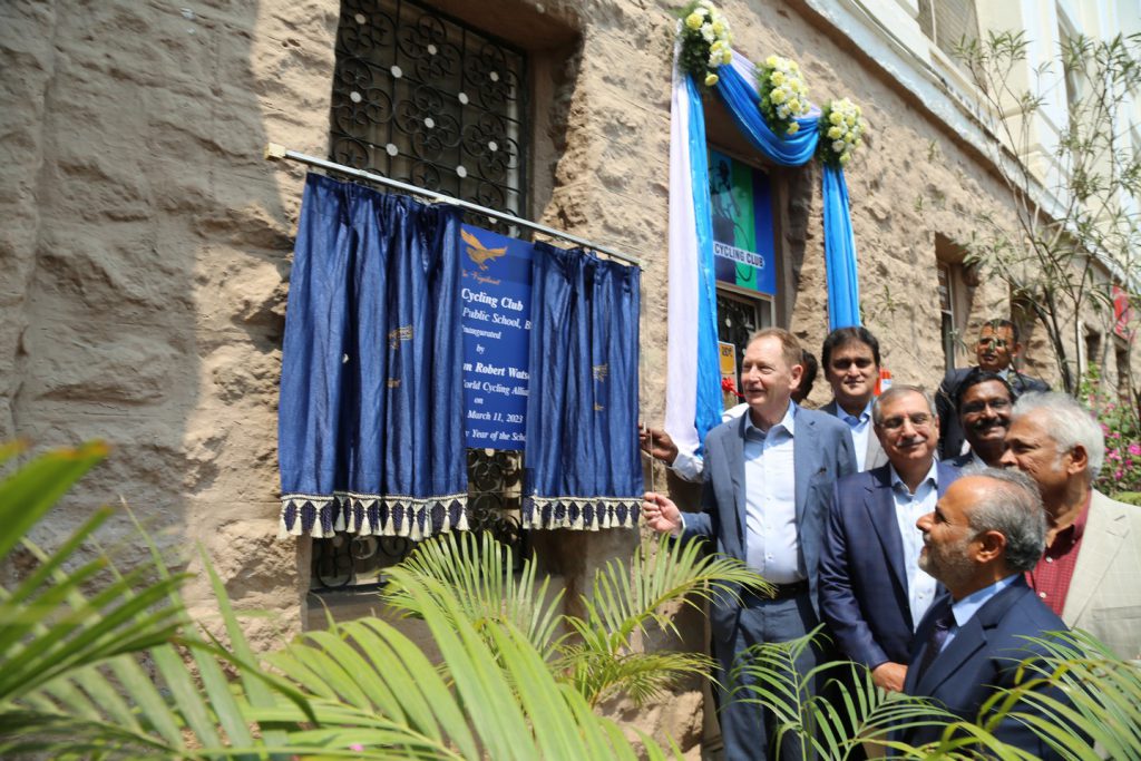 Sir Graham Watson, President of, the World Cycling Alliance, iterated, “Cycling ticks so many boxes for government and society. It reduces traffic congestion, improves health, combats obesity and diabetes, cuts carbon emissions, and helps us meet 11 of the 16 United Nations Millennium Development Goals. I am pleased that Hyderabad Public School has teamed up with the Hyderabad Cycling Club and the All India Bicycling Federation to establish this new Club, which will encourage young people to adopt healthier lifestyles. Last month I had the pleasure to visit your city’s new 23 km solar-powered cycle path with our Vice President D. V. Manohar. I can see that Hyderabad is at the leading edge of new thinking in India. There is an alternative to traffic congestion and air pollution in India: build more cycle paths and promote a cycling culture. In line with its admirable tradition of breaking new ground, Hyderabad Public School is showing a lead.”