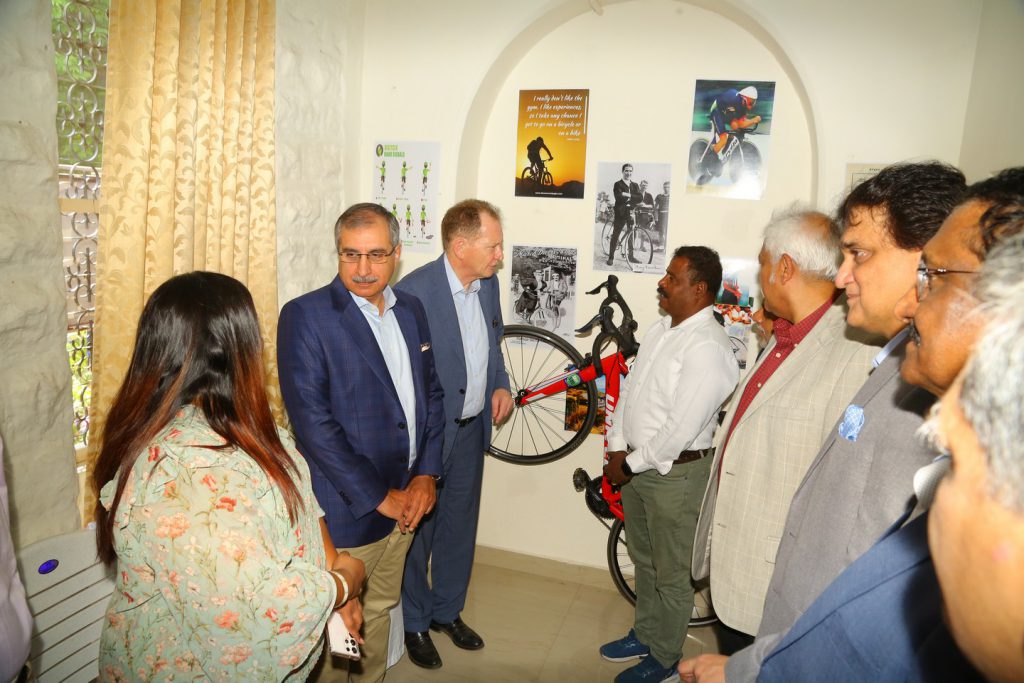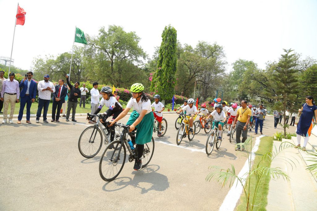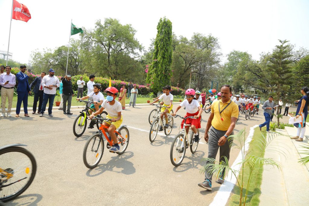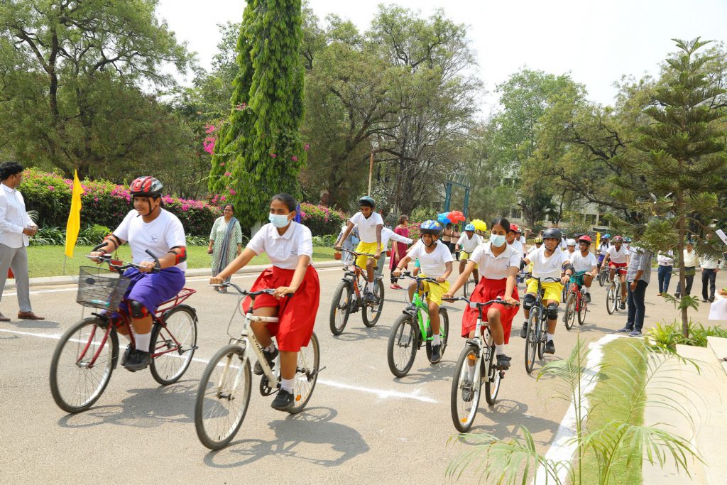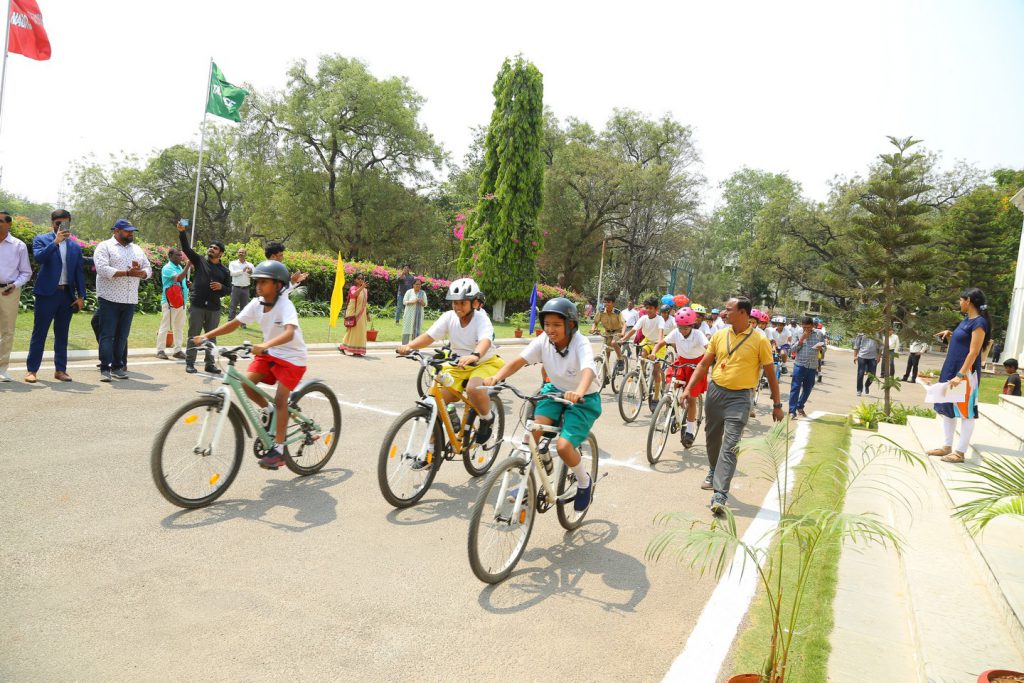 After the launch, Sir Graham flagged off a cycle rally of students and teachers on the campus. Following this, he shared his thoughts on cycling as a sport, and his life-long journey in cycling, leading up to the stewardship of the World Cycling Association with the students. He encouraged them to take up cycling as a sporting activity, which has multiple benefits, including a positive impact on individual health and the environment.