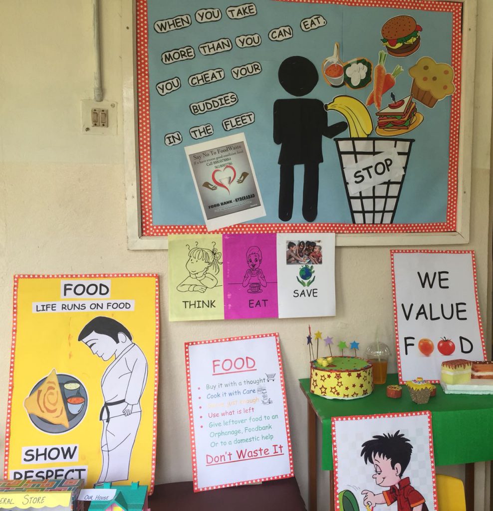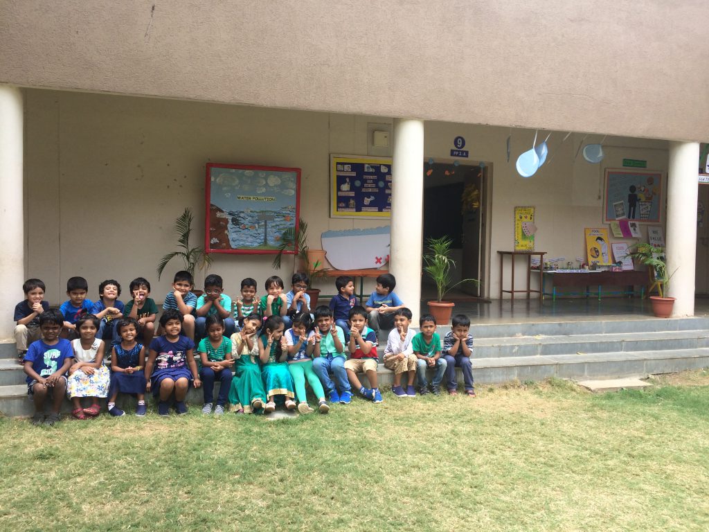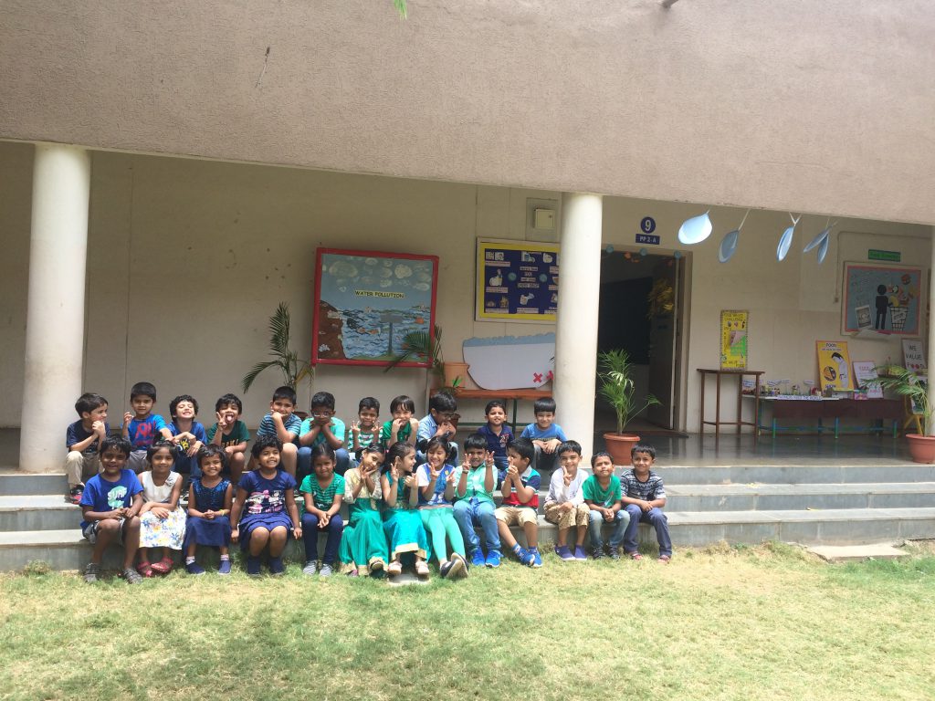 In continuation of Environment day and keeping in mind the Telangana ‘Haritha Haram’ programme, 50 saplings were planted in the school premises by the children of PP2 along with the principal, the registrar and the HM (Primary school). Children were put in small groups and helped in planting the saplings as well as watering them.