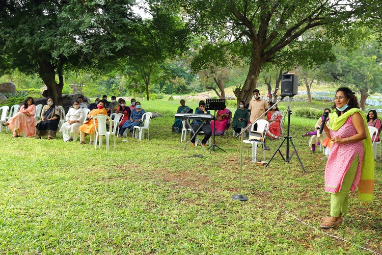 The Middle and Senior school teachers gathered at the baobab tree on 30th October, 2021 to bid farewell to one of the most multifaceted teacher from the Department of English – Ms. Pujita Krishna.