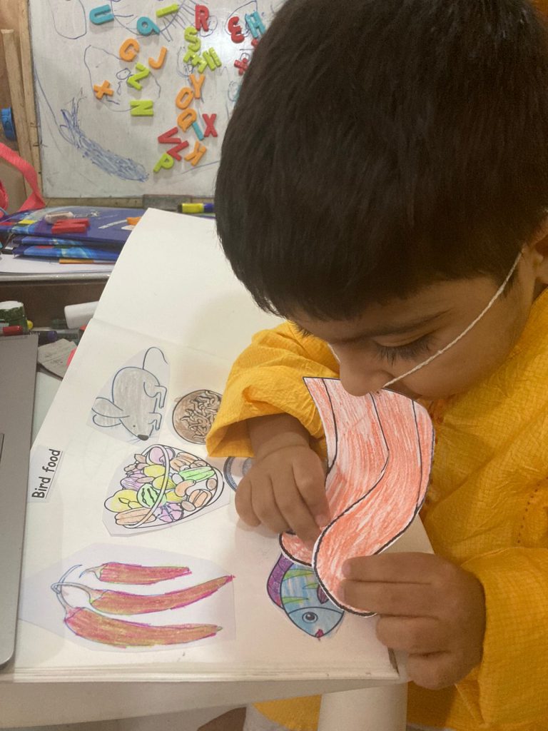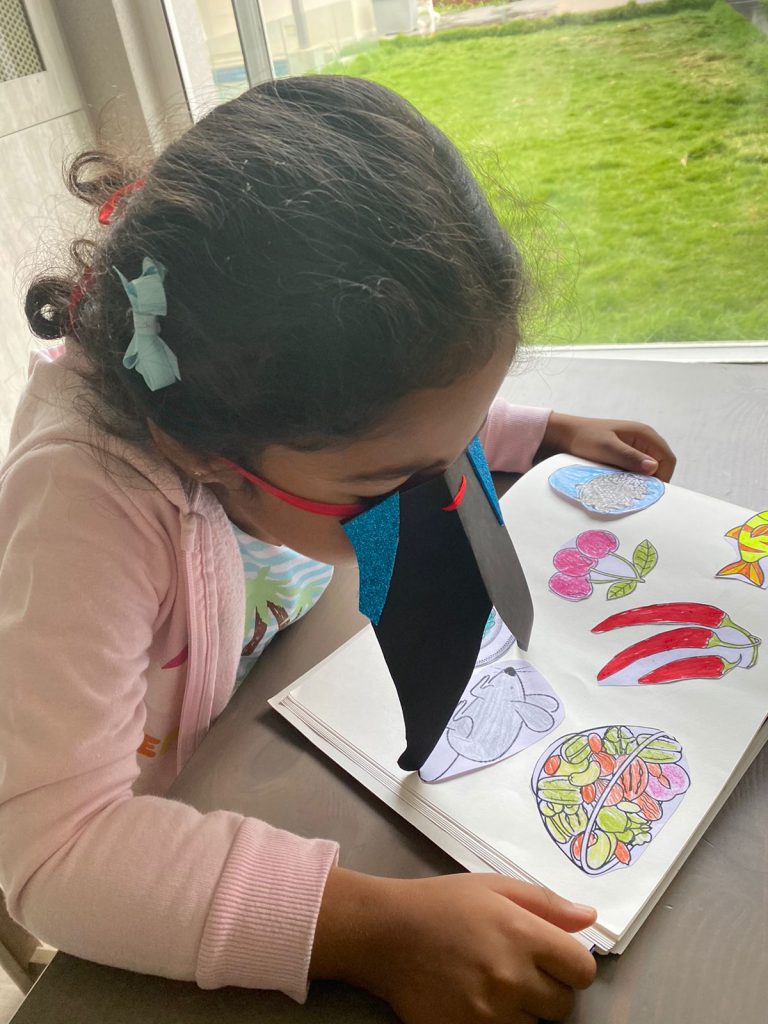 Children of PP1 had the ‘Feathered Friends’ topic for two weeks. In the first week, children learned about the essential characteristics, feathers, and nesting habits of birds like Tailorbird, Tucan, Pelican, Peacock, Parrot, Woodpecker, hummingbird, etc. The children understood the relationship between the different kinds of beaks and the food habits of birds.
