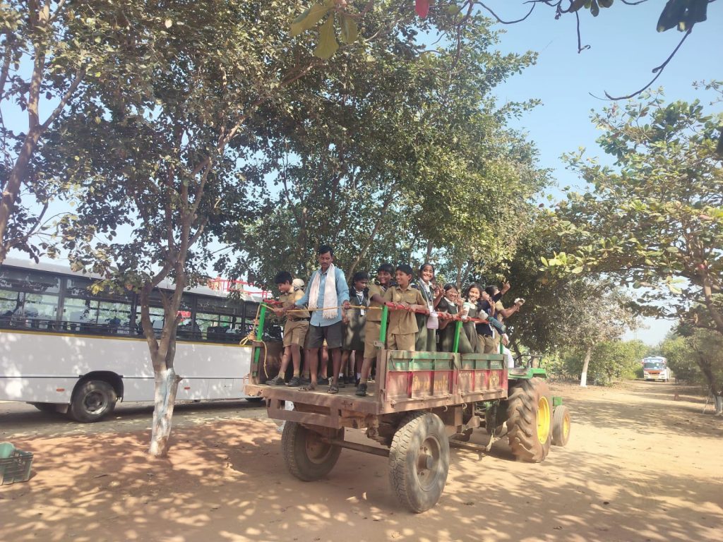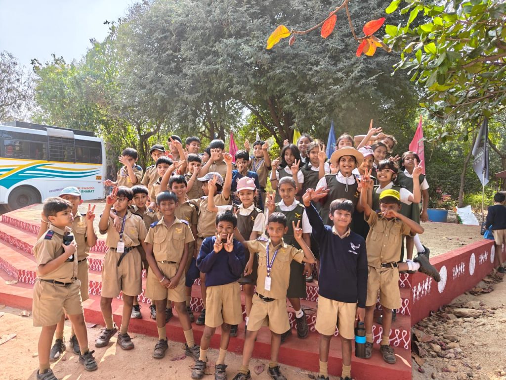 On 6 January 2025, the Grade 4 students and teachers visited Vinod Farms (Active Farm) in Muchintal on an educational field trip. The farm provided a rich learning experience with nearly 4,000 species of trees, along with a variety of flowering and ornamental plants. Students were fascinated to observe heritage trees over 160 years old and ancient fossils, gaining insights into nature and history. The visit also included enjoyable bullock cart and tractor rides across the fields, offering hands-on exposure to traditional farming practices. Students explored the poultry farm, where they observed different species of birds and benefited from the guide’s detailed explanations about plant varieties, their uses and characteristics. Overall, the trip was highly informative, engaging and memorable, fostering curiosity and environmental awareness among the students.