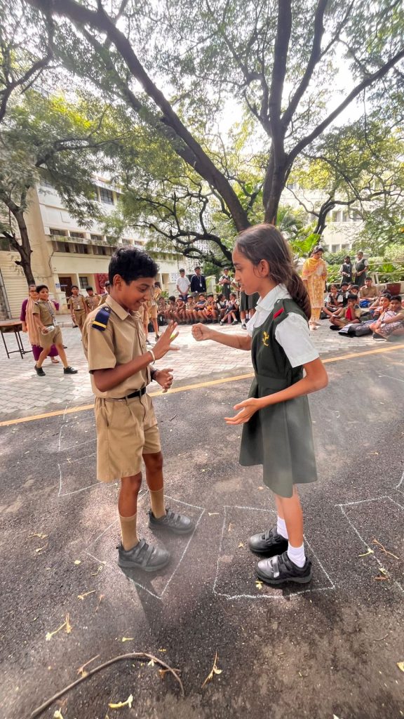 On Thursday, August 21st, around 300 students of Grade 6 came together to celebrate a memorable Bagless Day. The skies, which had been gloomy for a few days, finally cleared up—and so did the moods of the students, who were eager to begin a day of joyful learning.