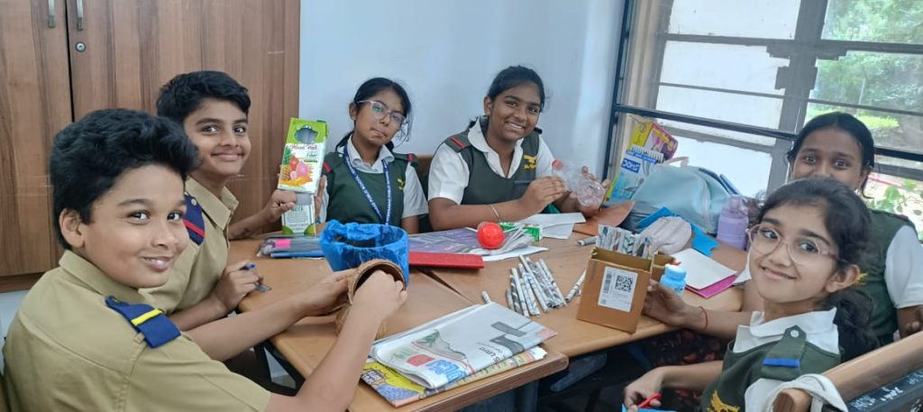 Later in the day, students participated in Dining Hall Etiquette training and a Best out of Waste activity. These sessions not only taught them the finer points of table manners but also emphasized the impact of recycling and upcycling on the environment.