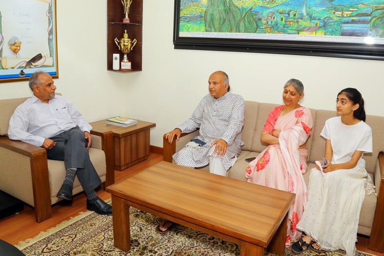 The Hyderabad Public School, Begumpet, was delighted to welcome its Alumni (Class of 1986) Guruji Ji Sh. Sanjay, who had soared to the heights of spiritual realization. Guruji, his wife Guru Mata Chandrima, and daughter Shreeya visited our school on Thursday, 22 July 2022, along with 25 of their followers from different parts of the country and the world. He addressed our students and staff on the topic of HOW TO WIN IN LIFE.