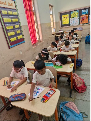 Following the storytelling, the students enthusiastically participated in a series of hands-on activities inspired by the story. These included colouring, matching exercises, and creative art tasks etc. Each activity was carefully designed to reinforce the story’s vocabulary, encourage verbal expression, and promote collaborative learning.