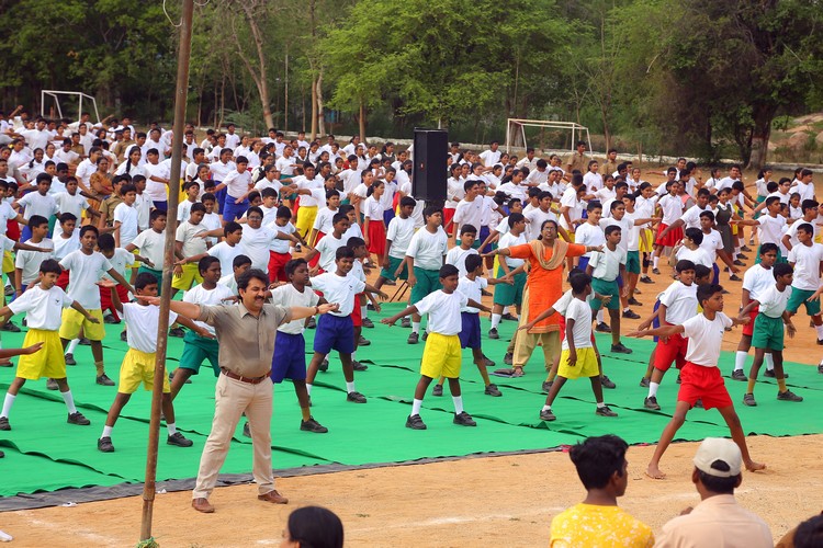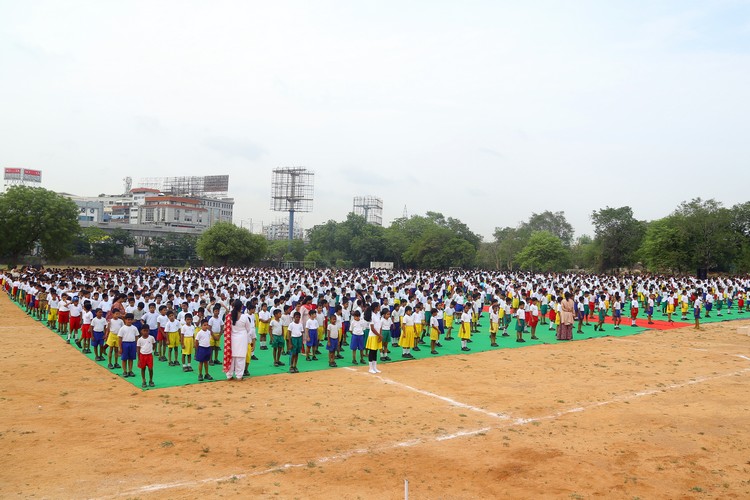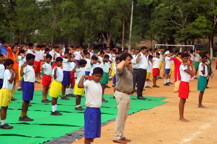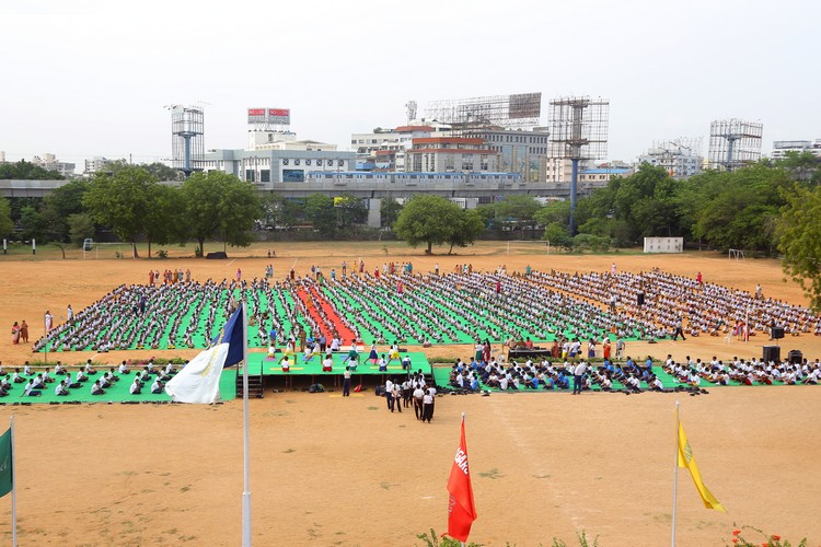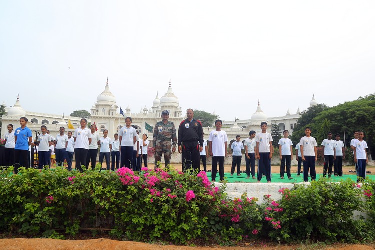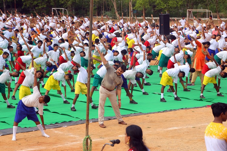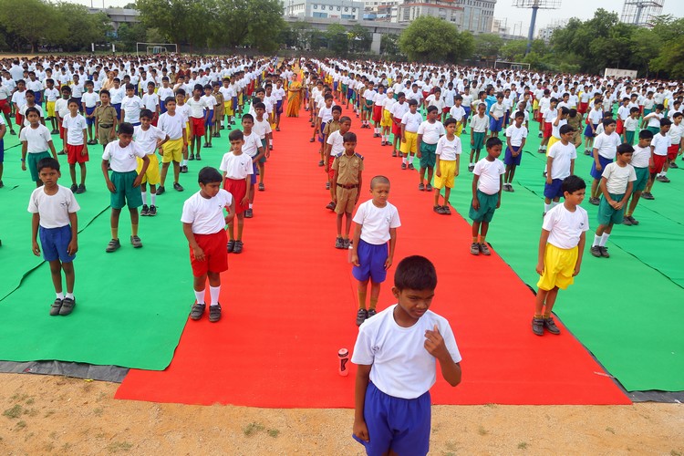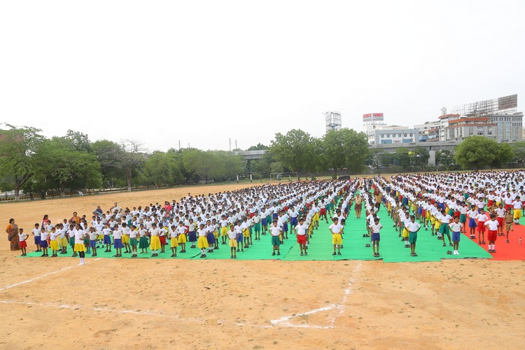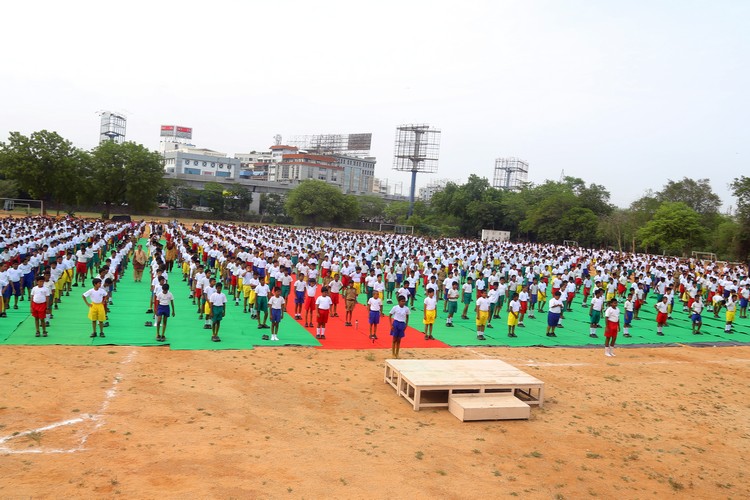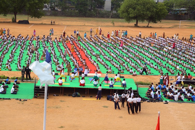 Three thousand students from Primary,Middle and Senior School performed various ‘Asanas’ , neck and body movements.150 students from all three NCC Wings performed ‘Asanas ‘which are part of their training programme.The series of advanced ‘Asanas’ and ‘Surya Namaskar’ performed by the group of students was a demonstration of flexibility and perfect synchronisation of body, mind and soul.The students from the Primary School showcased the meaning of each Asanas to the background of lyrical music.