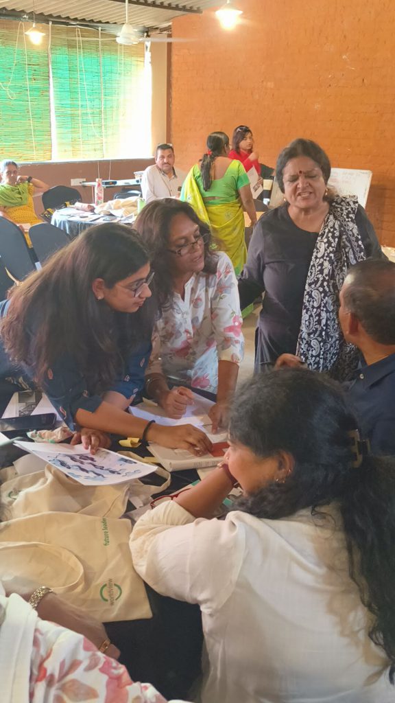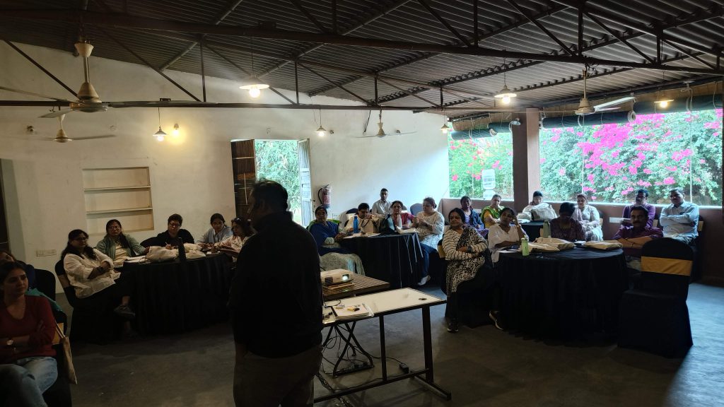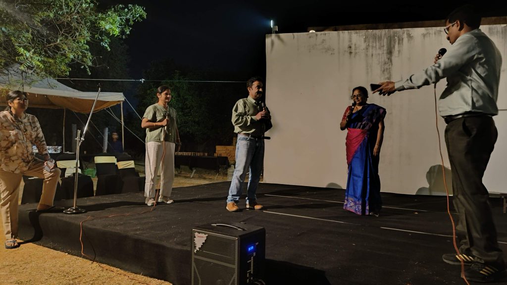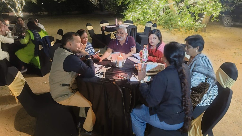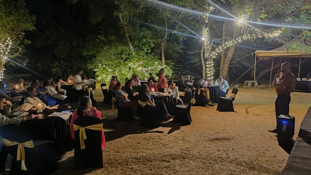 The first day of the retreat was packed with group activities. The activities were well curated to put to test how quickly participants overcame obstacles, with themes getting changed half way into the planning, and the members being swapped between teams. The participants used drama &theatrical skills to negotiate and transform themselves in situations with fast changing stimulus.