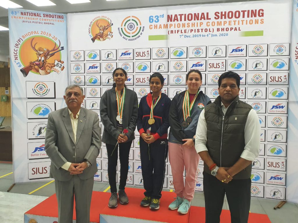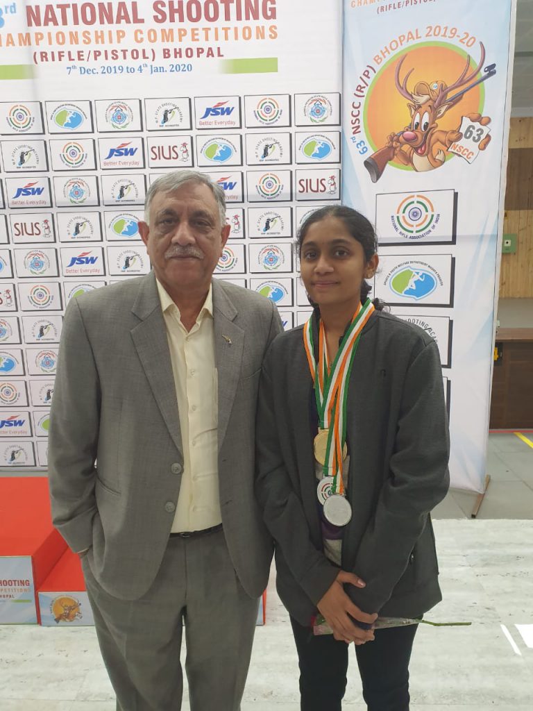 Homanshika Reddy studying in class 10, scored 625.2 and finished 5th in senior, junior categories and 6th in Youth category of 10 Mt Air Rifle at 63rd National Shooting championship held at Bhopal from 7th Dec 2019 to 4th Jan 2020. This 14 year old had won gold in Sub youth and two silver medals in Senior Civilian and Junior Civilian categories.