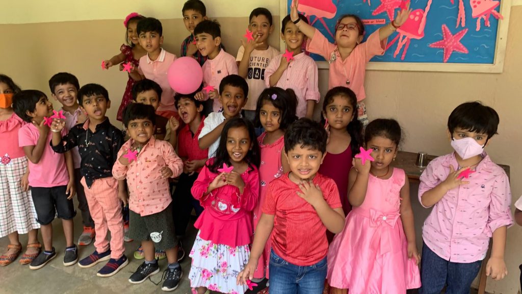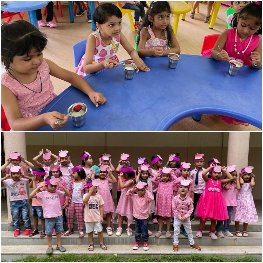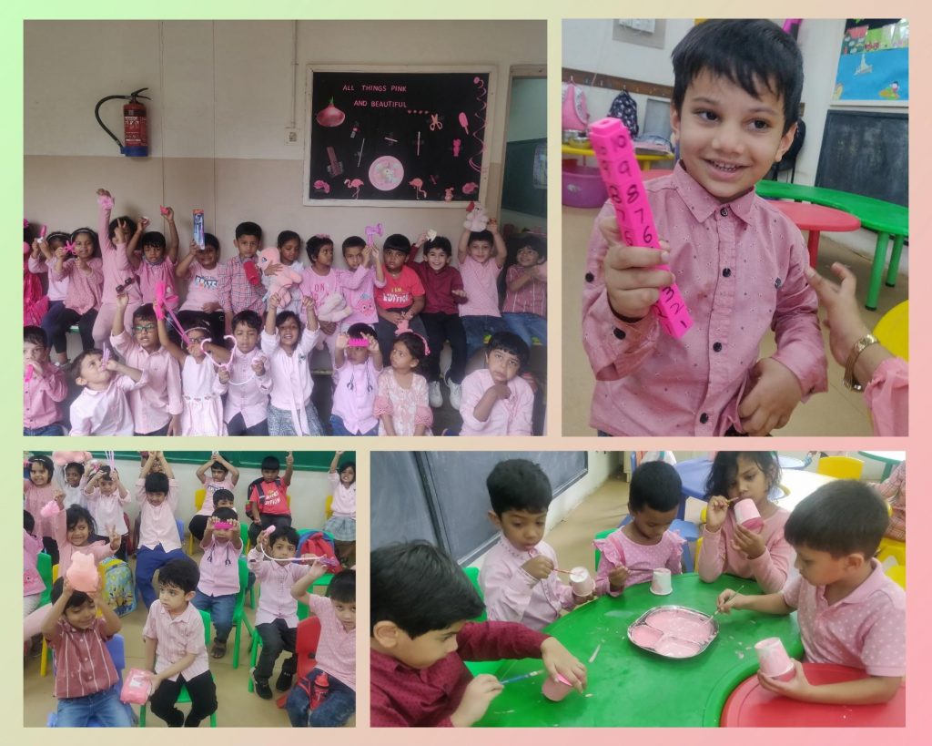 PP-2 started back to school with a “Pink” day celebration. Seeing our children bloom and blossom in different shades of pink was beautiful. Bulletin Boards displayed posters depicting the impact of pink colour in our lives. The tiny tots participated in a variety of hands-on activities related to the identification of pink colour. Painting and colouring activities reinforced the concept of colour in children. The teachers aimed to make them identify pink coloured objects they saw around them. Children were excited to discover that by mixing red and white colours pink could be obtained. They found that pink signifies love, beauty, and kindness.