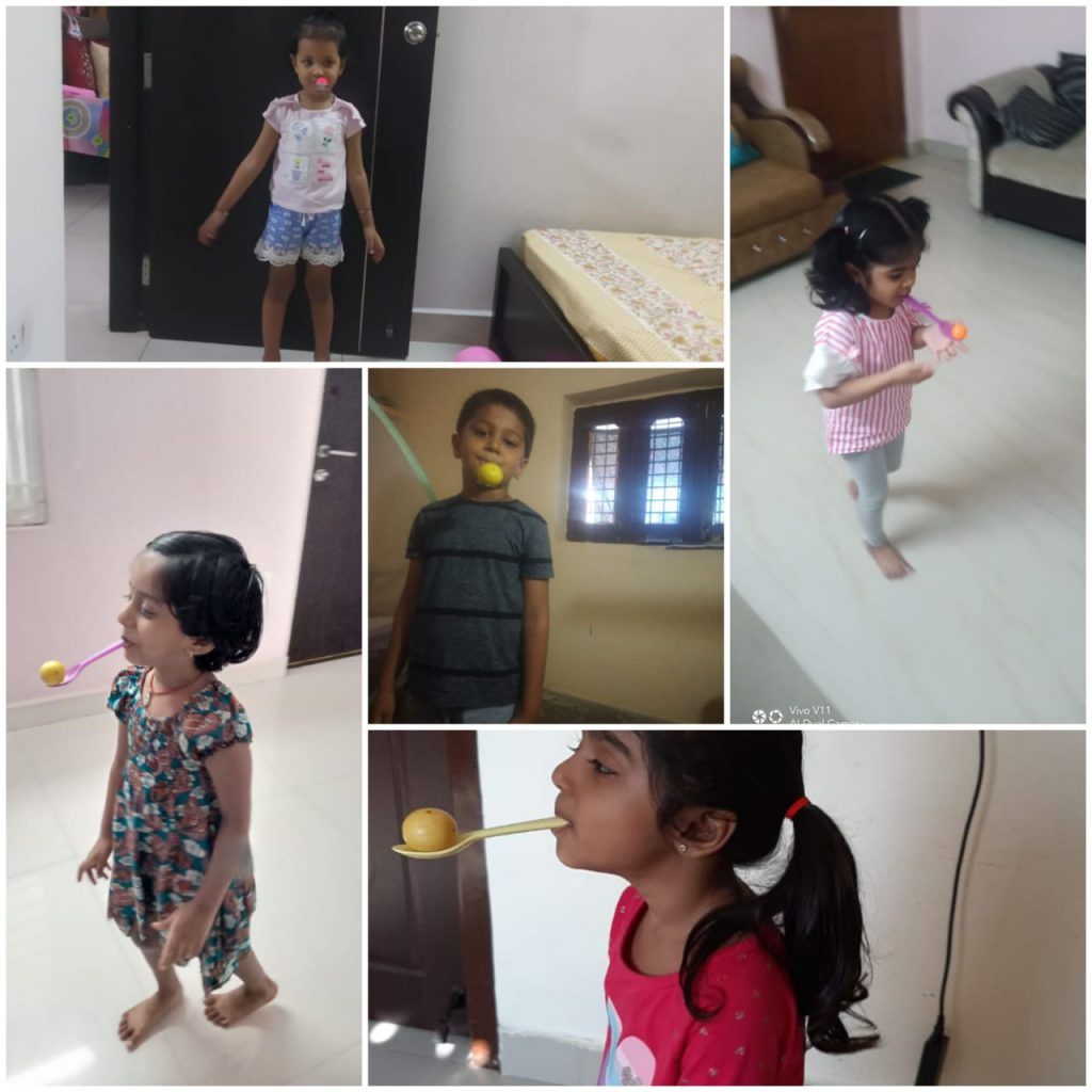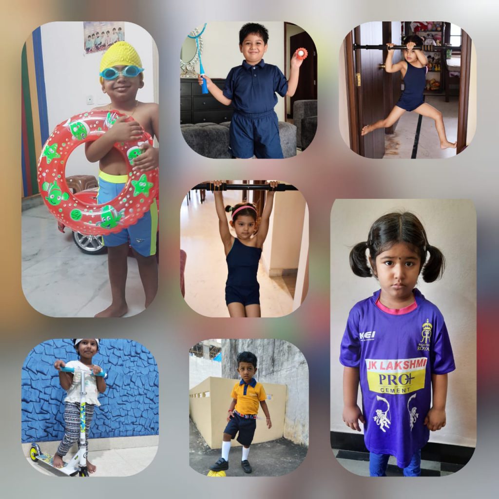 It has been scientifically proved that children who play outdoors have better vision and well-developed gross motor skills. Though the pandemic took away the joy of kids playing in parks and other outdoors, PP1 children celebrated Kinds of Sports from 9.9.20 to 11.9.20 to enjoy the spirit of playing. Children dressed in sports costume logged into the online class with pictures or equipment or anything related to their favorite sport and actively participated in show and tell activity. Children were least aware of how they were making creative use of resources around them. Each day a sport was planned such as lemon and the spoon, dribbling of ball, table tennis, which children spoke about the sport first, followed by playing it. They were shown interesting presentations about different kinds of sports. Those three days helped them grow physically, emotionally and socially. That’s what sports generally do.