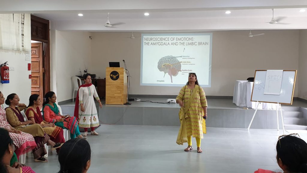 Mrs Sonal’s three hour workshop was to prepare the teachers to be compassionate and to act according to the child’s beliefs. She expressed the need to always have a dynamic environment and be equipped to handle the situation at the same time paying attention to each individual child. She also discussed the total importance of the total development of the child in moral, intellectual, social, emotional and behavioural aspects in them. Mrs Sonal is a gifted orator her pleasant, impactful and thought provoking workshop was impressive.