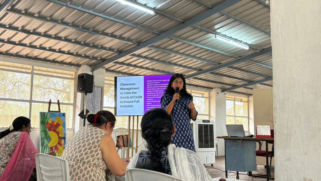Simultaneously, another workshop focused on “Special Needs of Children, Learning Gap Issues, and Needs of Students on Scholarships,” facilitated by Shraveni Vijaya, a Special Educator for Middle School. This interactive session addressed various disabilities and classroom management strategies, along with exploring learning gap issues and strategies for better accommodation. Discussions also extended to understanding and supporting students on scholarships, emphasizing the importance of teacher support in addressing their challenges effectively.