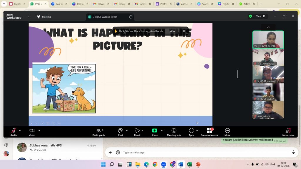 Students of Grades 4–6 (ICSE & IGCSE) took the lead as Baraza Hosts, guiding global discussions on “Digital Detox” — sharing why screen breaks matter and exploring fun offline activities like sports, music and family time.