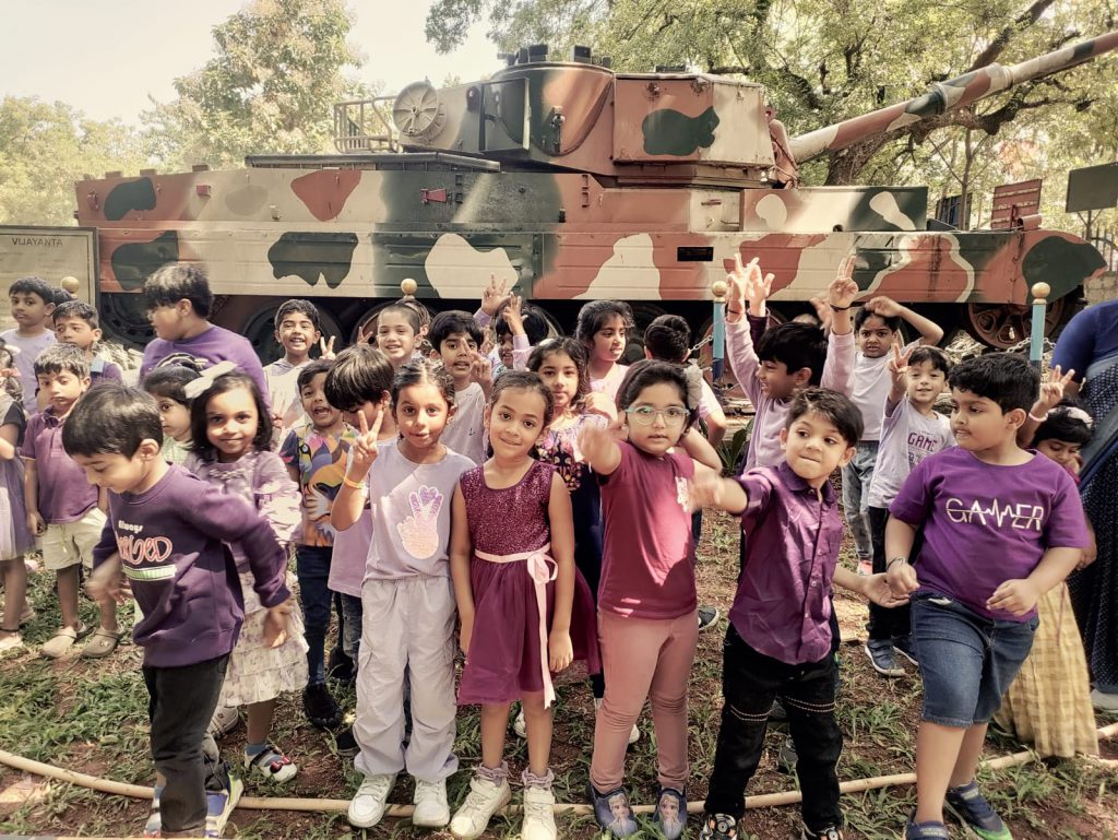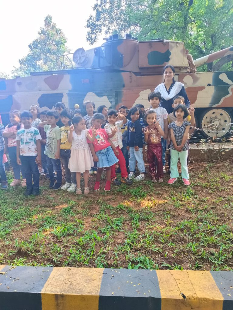 On 1 st of November, our students embarked on an exciting adventure, exploring the huge campus. The internal picnic, themed “Exploring Vehicles” aimed to foster curiosity, creativity, and learning among our young explorers. Our school’s playground was transformed into a mini-vehicle exhibition, featuring an array of vehicles, including the Vijayanta Battle Tank, the Chipmunk Aircraft and many others. The students were excited toview the display of the Anchor in the school. The students developed curiosity and interest in vehicles and transportation. It also enhanced problem-solving skills through interactive activities, fostered creativity and self-expression through art and design and promoted awareness about vehicle safety and responsible behaviour.