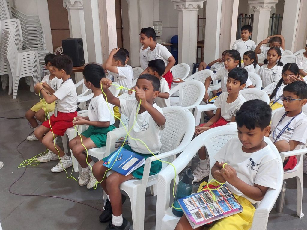 The Little Leaders’ League session for Grades 1-4 focused on developing teamwork, positive communication, and problem-solving skills. Over two hours, 60 students participated in activities such as Telephone, Ball-Balance Race, and Human Knot, all designed to enhance leadership abilities. These interactive games fostered self-awareness and collaboration, allowing students to engage with peers in age-appropriate ways while building essential leadership qualities.