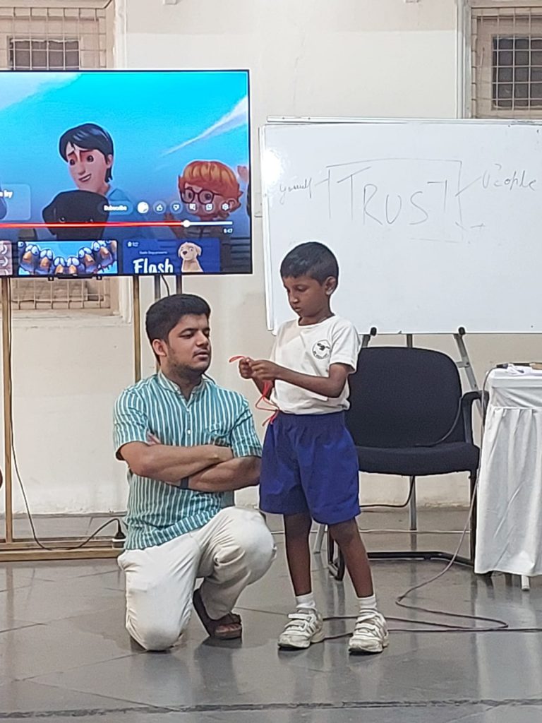 The 2-hour trust-building session for Grades 5-7 was designed to enhance empathy, teamwork, and communication skills. Through activities such as Famous Pairs, Trust Circle, and The Enigmatic Self, students explored the concept of trust, its role in leadership, and the characteristics of trustworthy individuals. Discussions throughout the session emphasized the importance of fostering trust through consistency, honesty, and respect, helping students strengthen their interpersonal relationships and leadership potential.