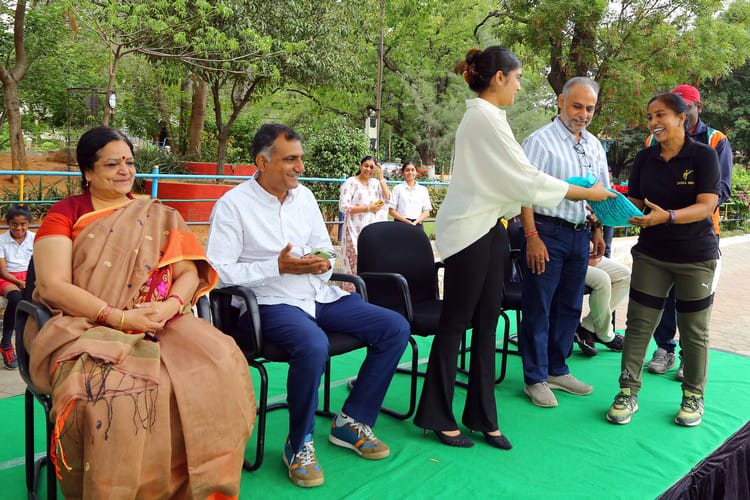Ms. Esha Singh, a 17-year-old Junior World Champion in 10m Air Pistol, was the Chief Guest for the closing ceremony and was graced by the Principal, Dr Madhav Deo Saraswat, Vice-Principal, Ms. Amritha Chandra Raju and the Registrar, Col. PLN Sarma. The Chief Guest applauded the efforts of the school in promoting games as an integral part of the curriculum. She urged the students to identify their game of interest and hone their skills in it so that they can reach great heights.