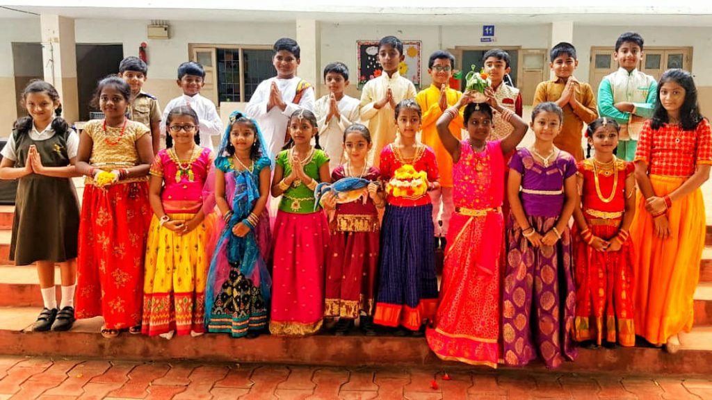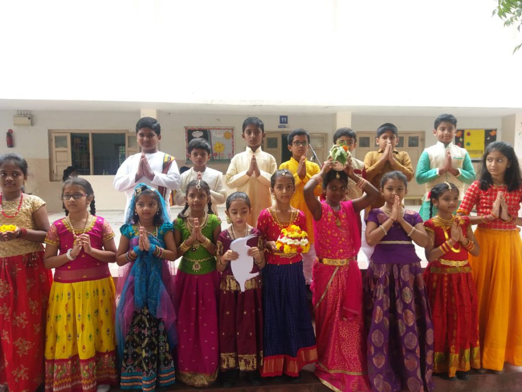 To commemorate the birthday of Poet Kaloji, our Telangana State has declared September 9th as ‘Telugu Bhasha Dinotsavam’. The Primary School celebrated the Telugu Language Day on 9th September. The students dressed up in the colourful traditional attire. They recited poems, sang songs, to describe the glory of the Telugu language.