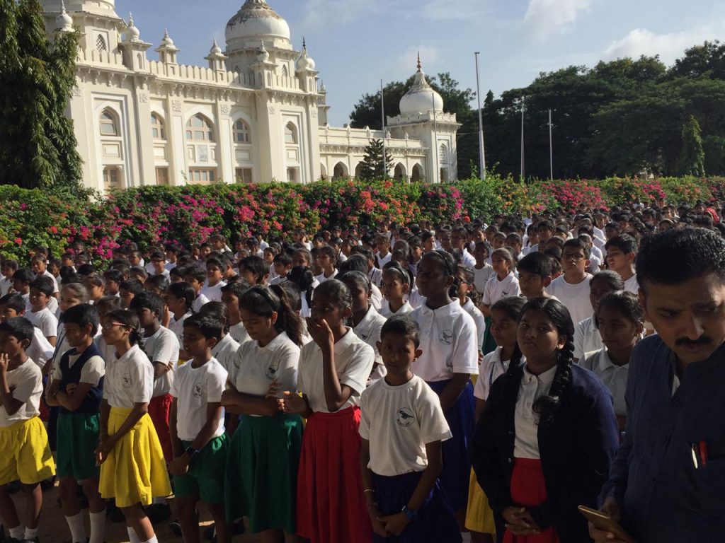 The Hyderabad Public School students expressed their gratitude to their mother tongue by offering their heartfelt prayers through the song. ‘Ma telugu thalliki mallepoodanda’on11th September. The assembly proceeding was carried out in Telugu.