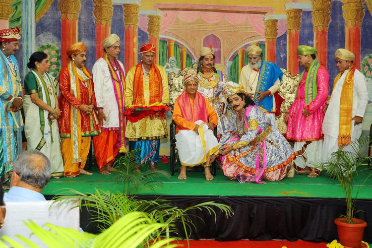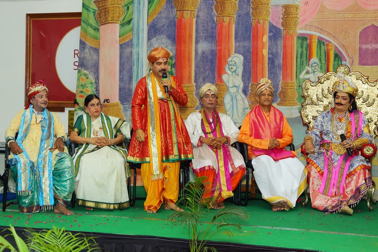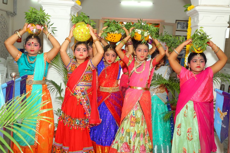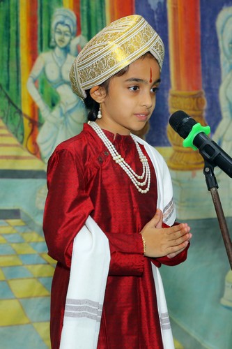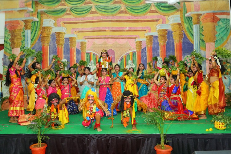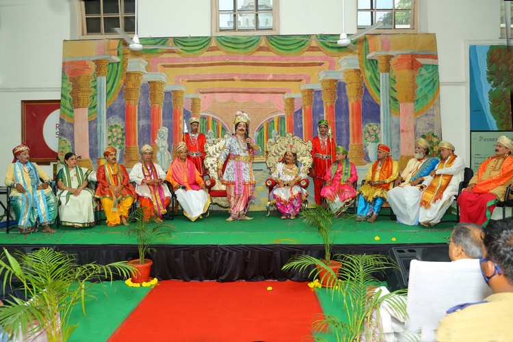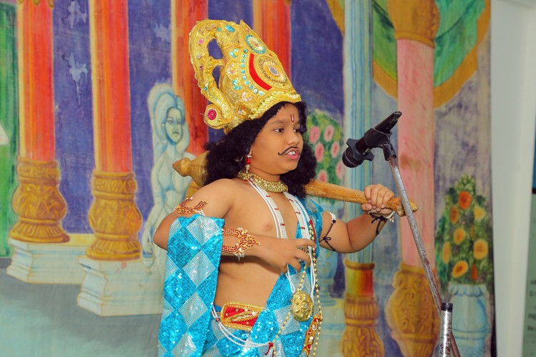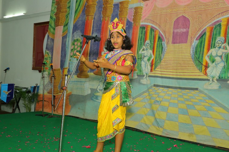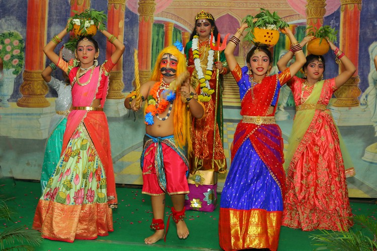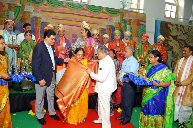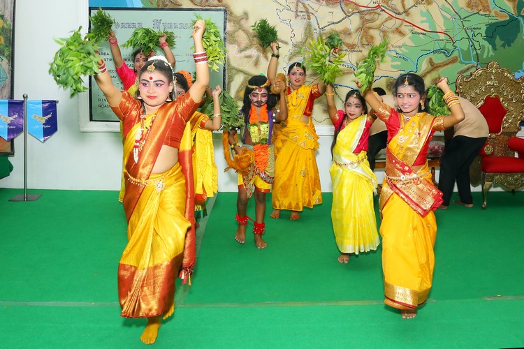 “Bhuvanavijayam” a court scene of Sri Krishna Deva Raya, whose period is known as the Golden Period of Literature in Telugu, was depicted on the occasion. Other programmes like Bonalu Dance by the Primary School children, Alluri Sitarama Raju’s soliloquy by Veda Arjun Yarlagadda of class 6, ‘Navarasa Bhava Vinyasam’ – Poem by children of the Middle School were also organised.