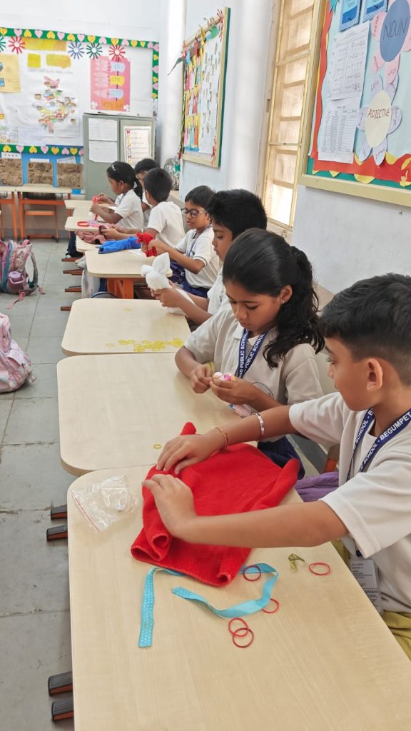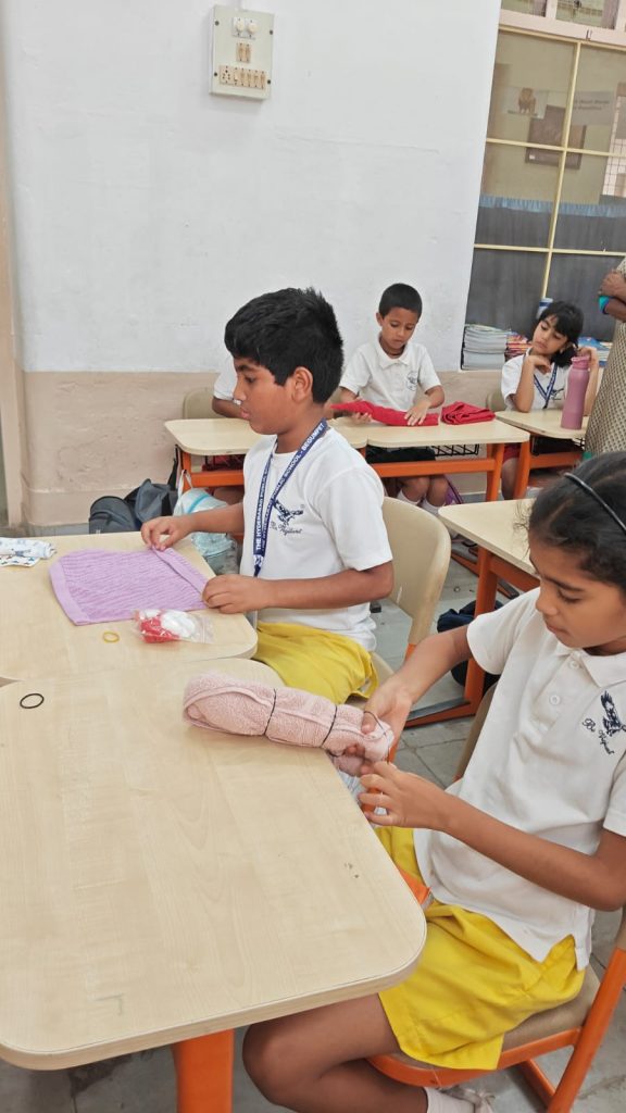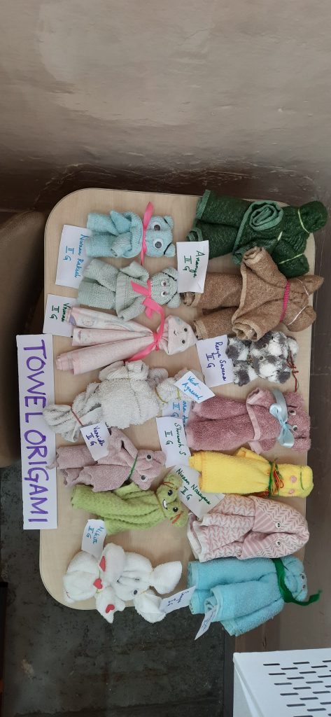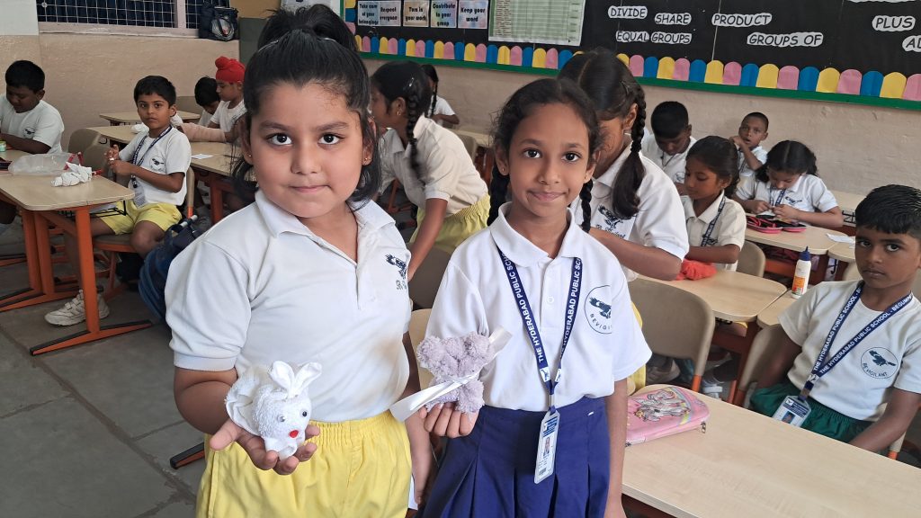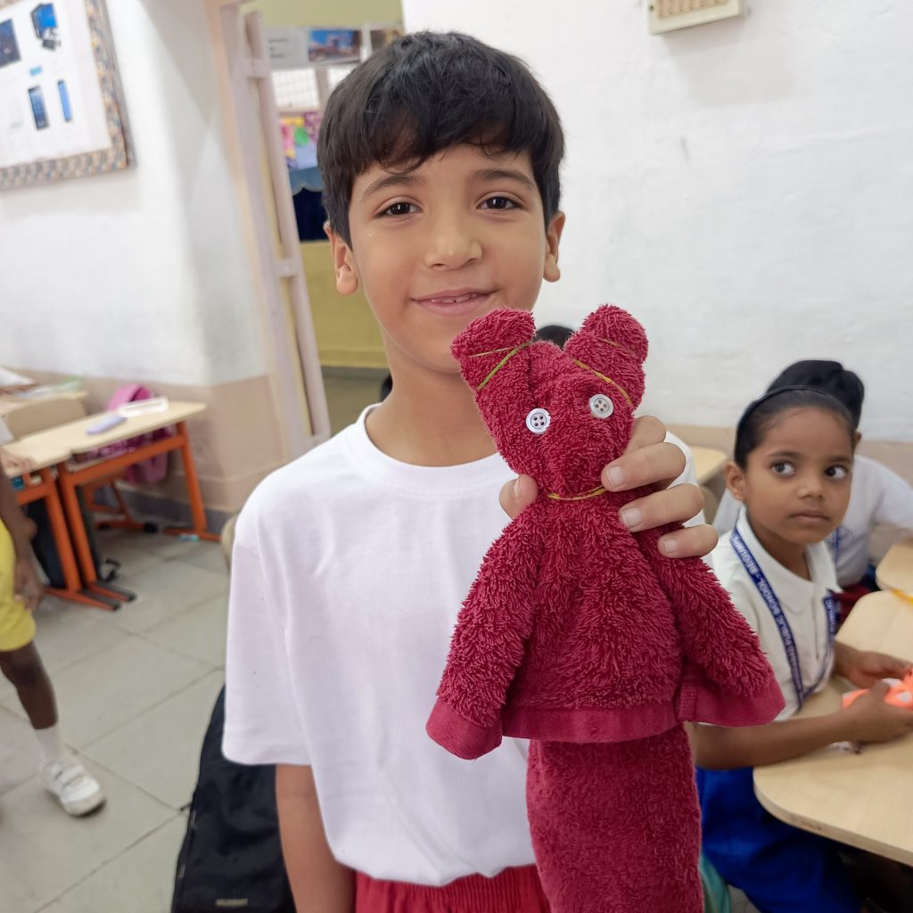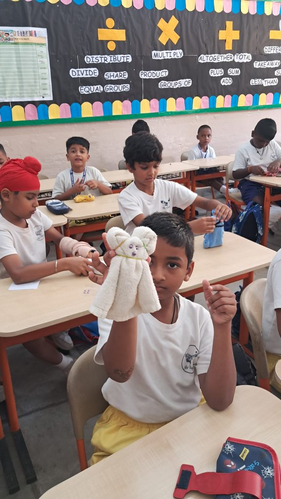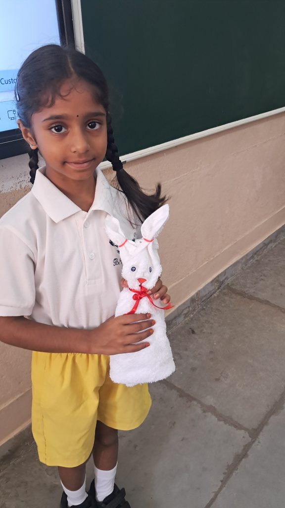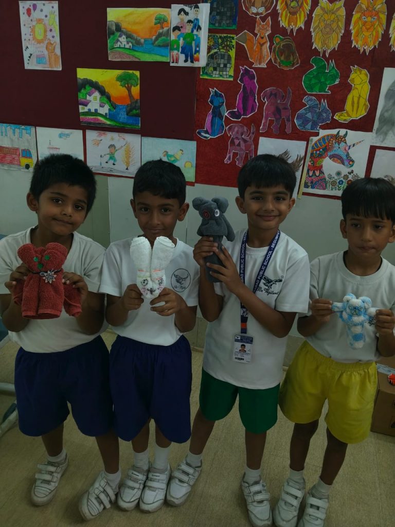 The Grade 2 students had a wonderful time participating in the Towel Art Activity held on 8 October 2025. Using colourful towels, glitter, stickers, and googly eyes, they joyfully crafted beautiful handmade creations of land animals, birds, and water creatures. The activity allowed them to explore their imagination and creativity while having great fun. Their enthusiasm and artistic expressions made the day vibrant and memorable.