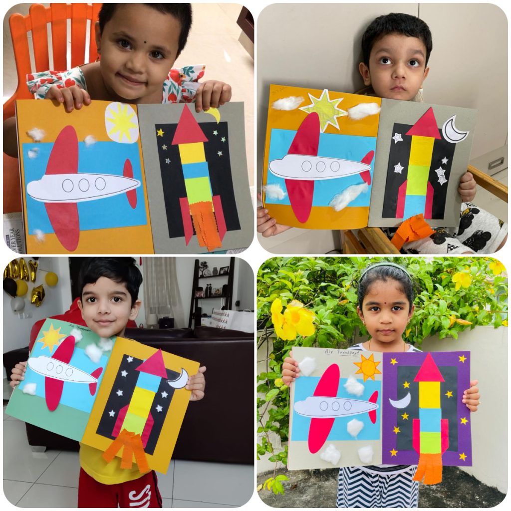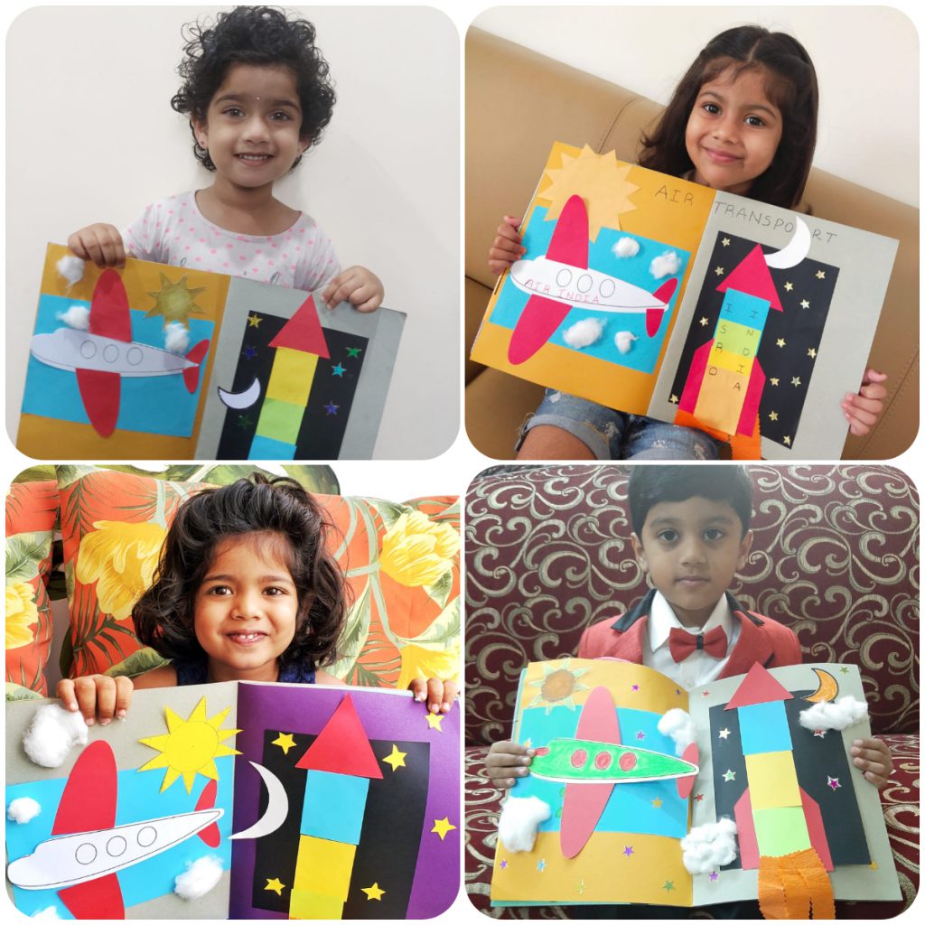 The last and the third mode of transport was ‘Air transport’. Teachers recapitulated the land and water transport before they introduced air transport. Children saw different air vehicles and a supporting activity was done with an airplane and a rocket to emphasise the concept learnt. Finally, those three weeks sailed smoothly.