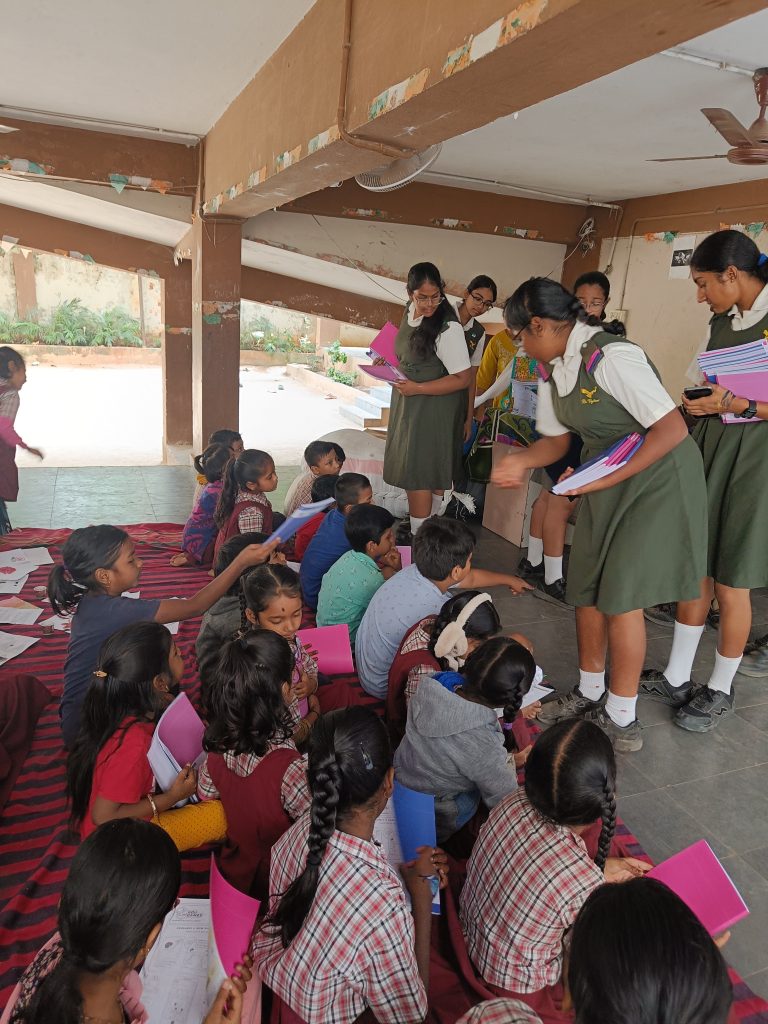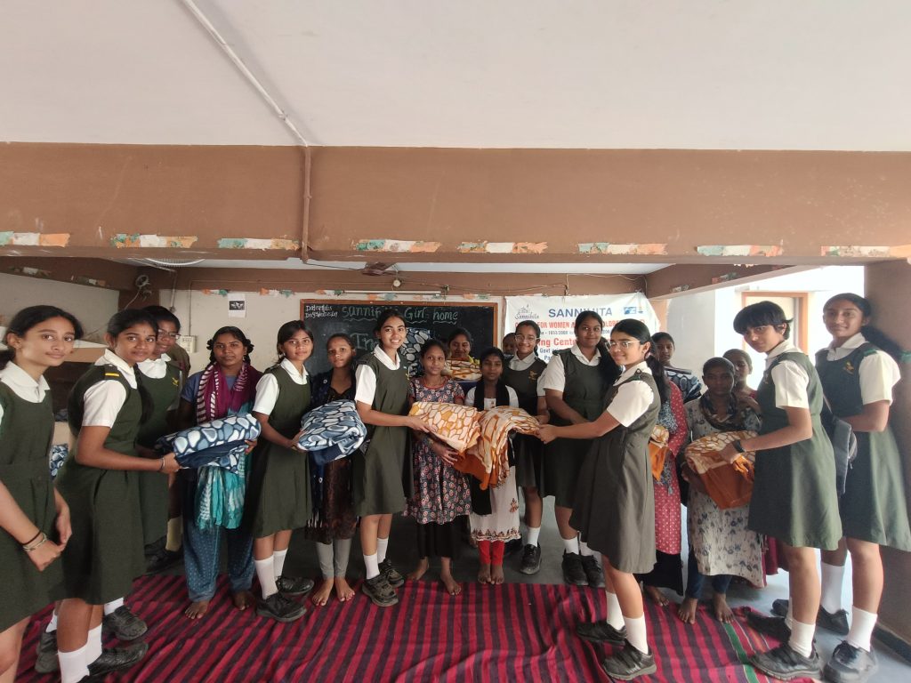 On 22nd November, 2025, members of the Interact Club visited Sannihita Girls Orphanage, located in Park Lane, Secunderabad. The orphanage is home to 50 young girls, and with winter approaching, we aimed to bring both comfort and joy through our contributions. As part of our donation drive, we handed over 50 warm blankets, 520 sanitary pads, 200 storybooks for their library, stationery kits and 200 notebooks.